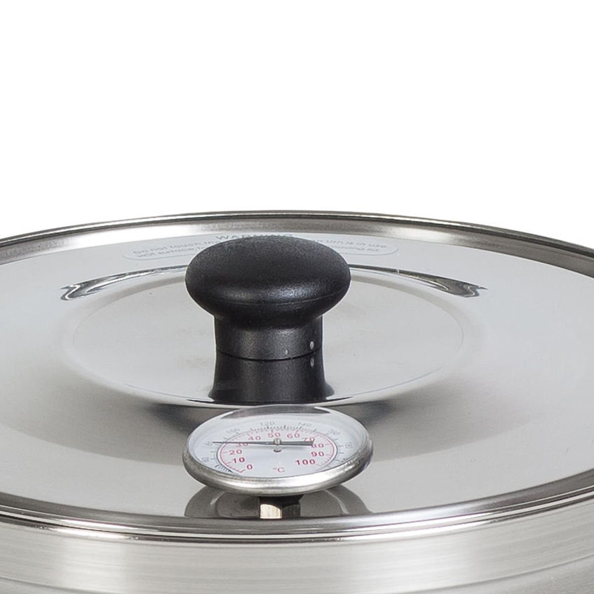 - Puneți termometrul în capac, așezați-l deasupra și fixați recipientul cu ajutorul cârligului de fixare.