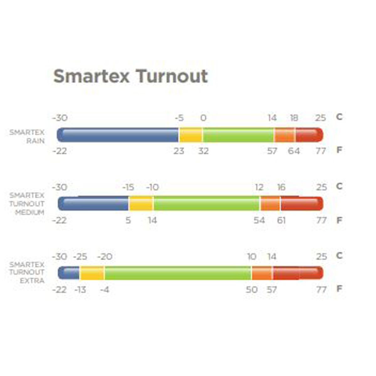 Bucas Smartex Turnout Medium oferă rezistență și confort pentru temperaturi cuprinse între -10°C și +12°C.