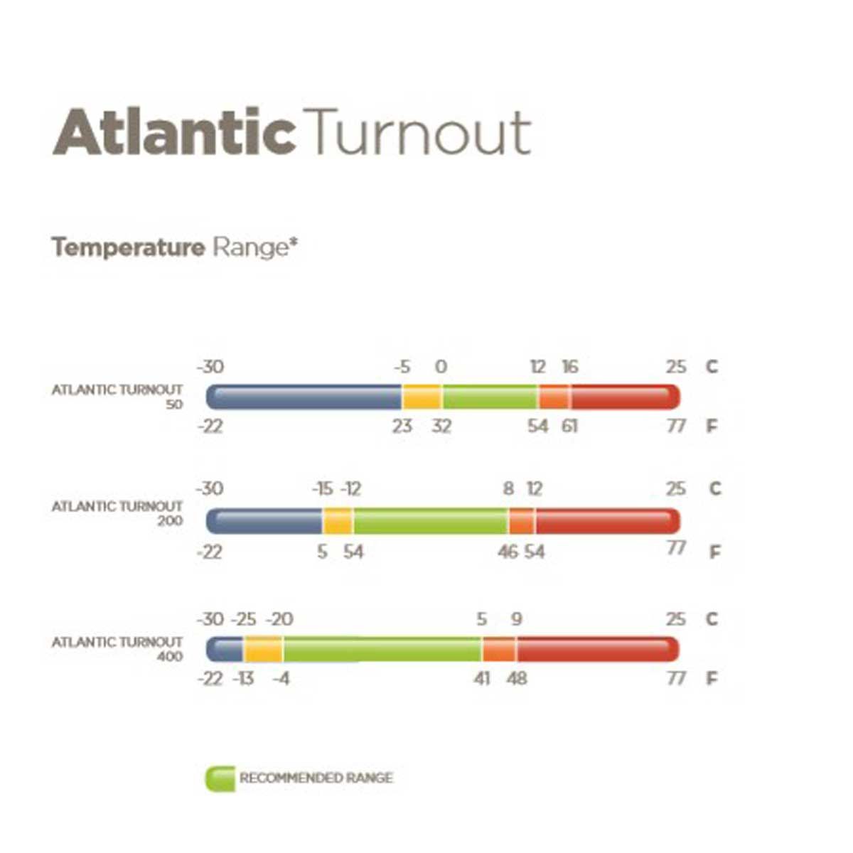 Intervalul de temperatură al păturii pentru cai Bucas Atlantic Turnout este cuprins între -12°C și +8°C.