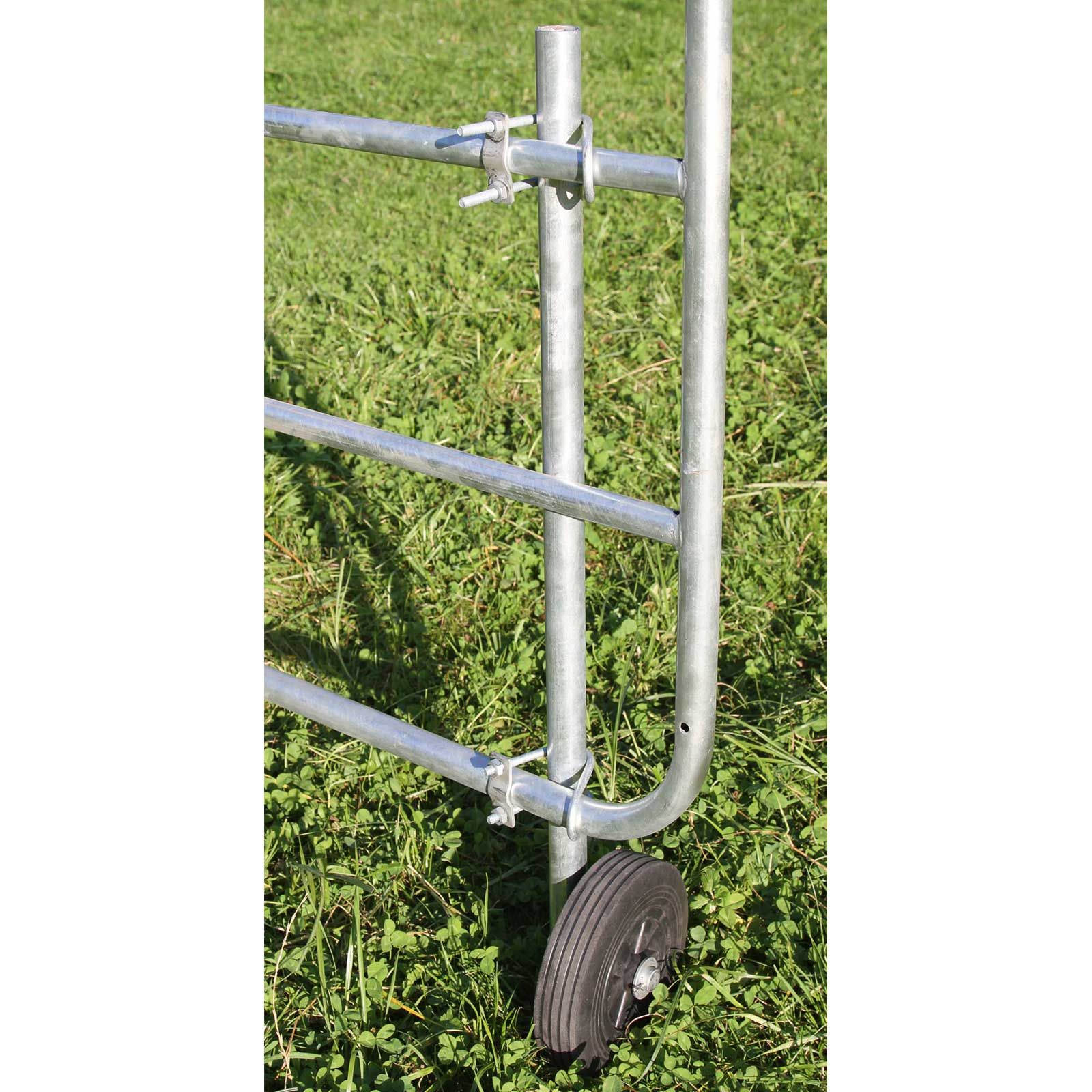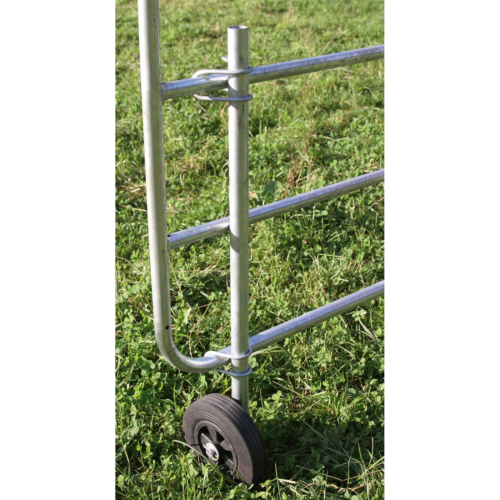 Roata de susținere susține porțile de gard de pășune deosebit de late și ușurează sarcina pe stâlpii porților de pășune. Acest lucru previne deteriorarea datorată supraîncărcării. Roata de susținere a porții de pășunat este galvanizată și este potrivită pentru toate porțile de pășunat. Cu ajutorul pieselor de montare furnizate, roata de sprijin este ușor de montat și reglabilă pe înălțime. Roata din cauciuc masiv are un diametru de 20 cm și este extrem de durabilă.