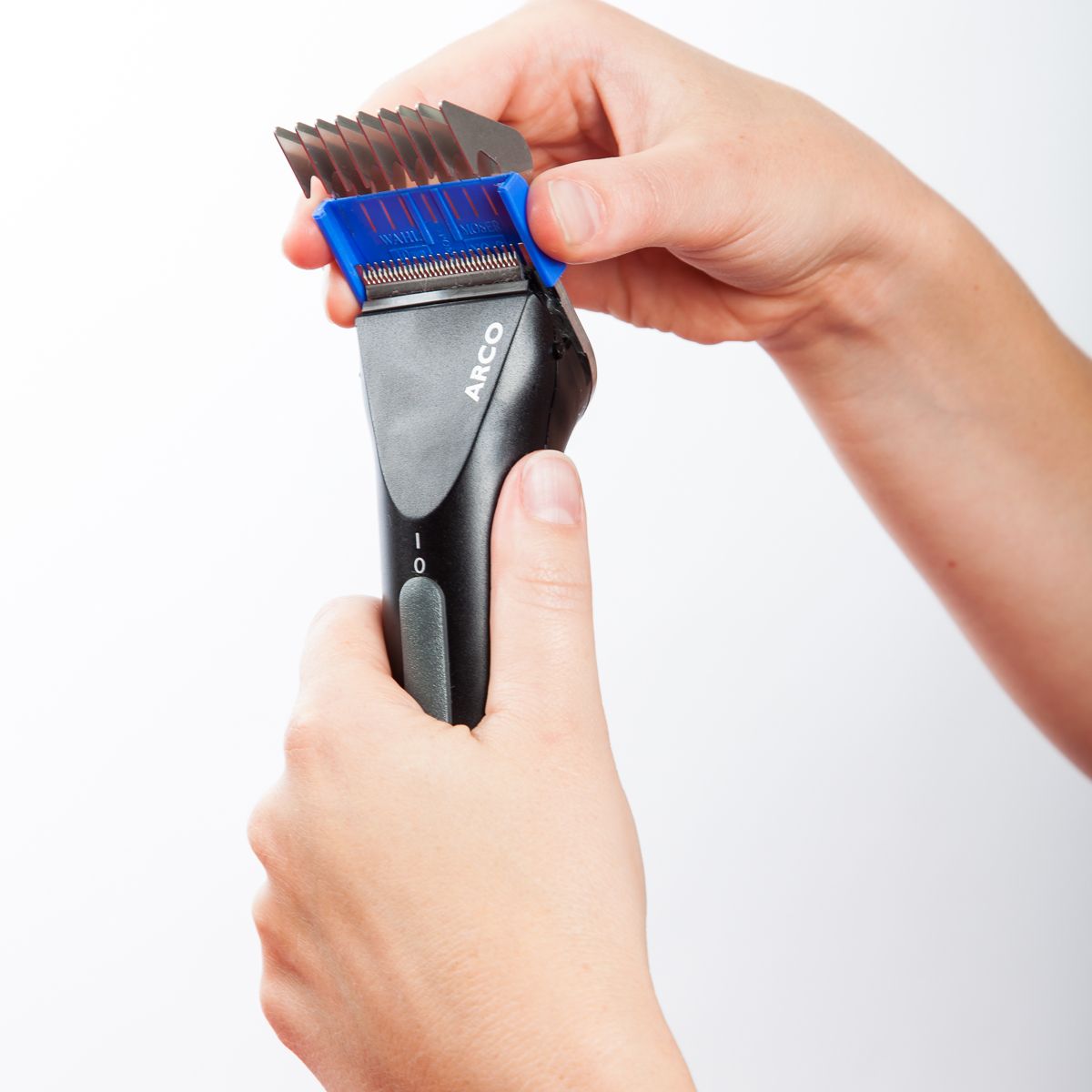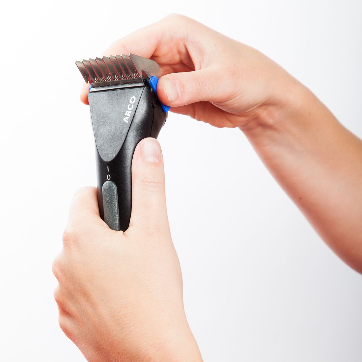 - Lungimea de tăiere a setului de tundere în milimetri + lungimea de tăiere a pieptenelui de împingere în milimetri = lungimea de tundere obținută!