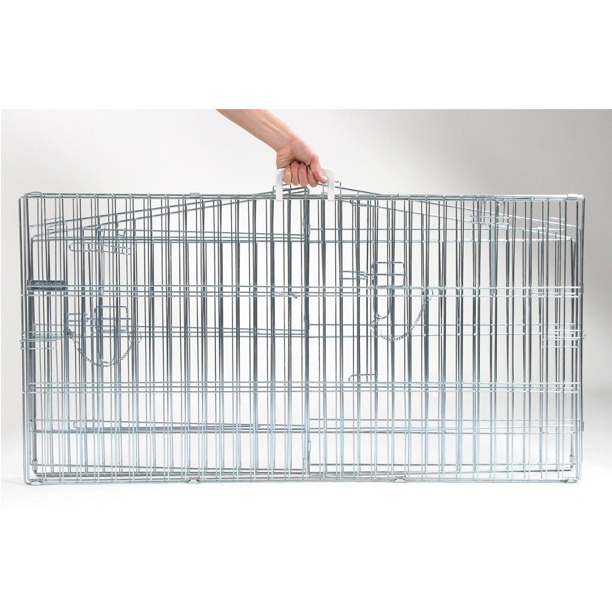 Deplasați-vă cușca exterioară mai confortabil ca niciodată! Cușca Easy pentru crescătorii în aer liber, cu design galvanizat, este ușor de montat și de mutat. Elementele individuale pot fi fixate împreună într-o clipă, fixate în poziție și deplasate cu ajutorul unui mâner de transport. Capacul cu grilă cu balamale vă oferă acces neîngrădit la animalele mici.