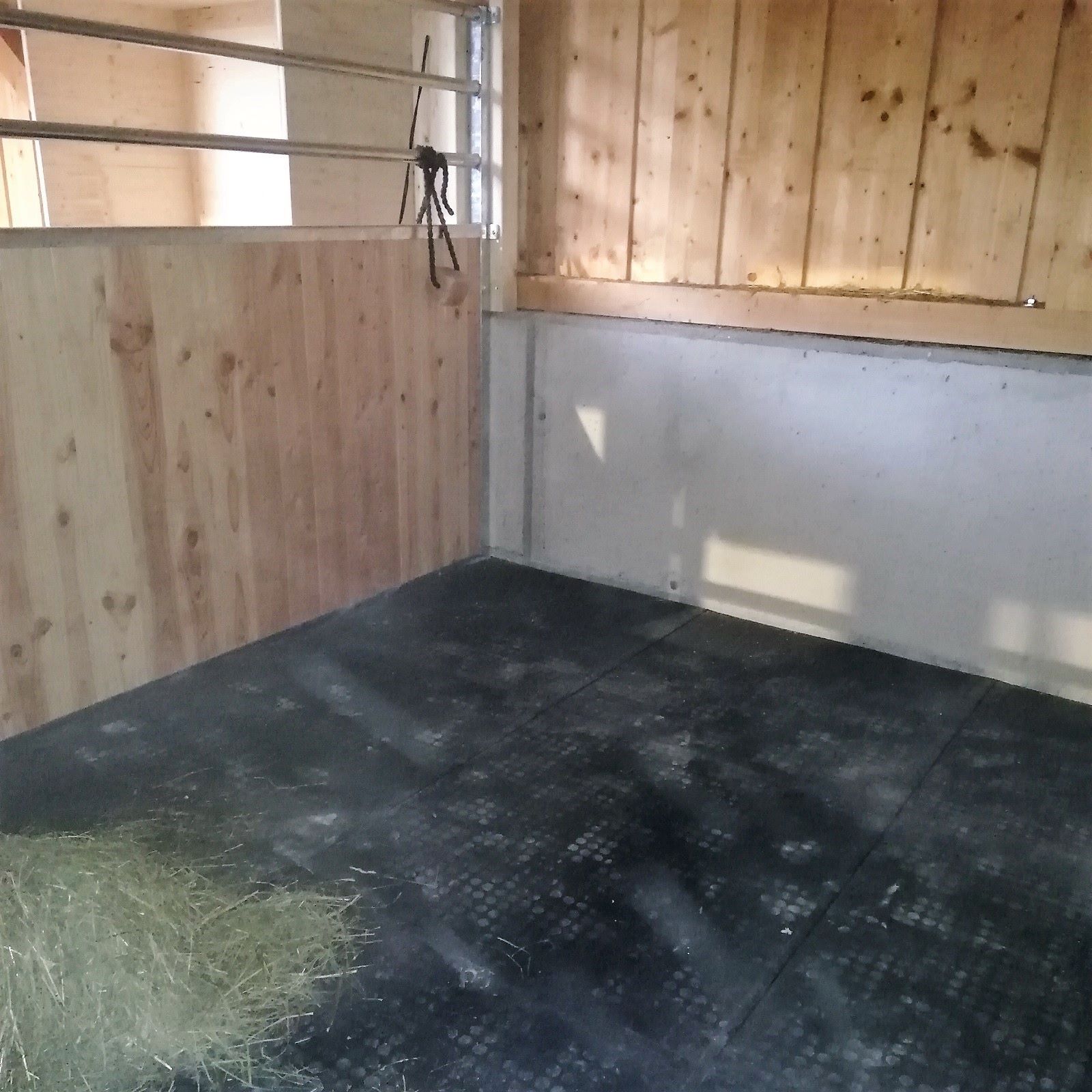 Cu o înălțime de 3 cm, covorașul practic și pătrat pentru grajduri și boxe oferă calului un confort deosebit atunci când stă în picioare și se întinde în grajd.