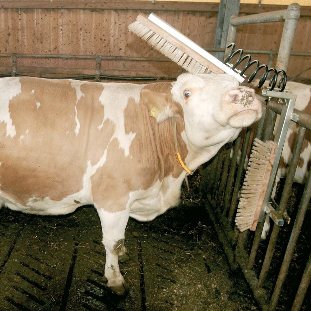 Peria pentru vaci de la Agrarzone poate fi montată aproape oriunde în hambarla orice înălțime. Un arc face ca peria orizontală să se poată deplasa în toate direcțiile, iar vacile se pot scărpina și freca după bunul plac.