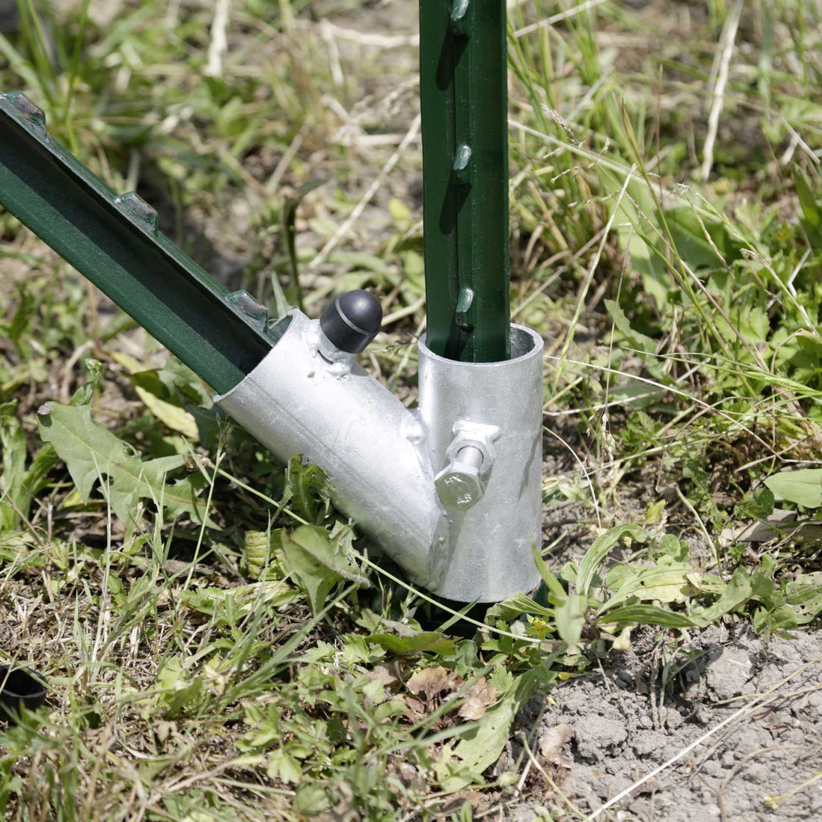 În locul stâlpilor din lemn, care au dat rezultate bune și testate, stâlpii metalici stabili T-Post s-au dovedit în practică pentru un gard de pășune modern și rezistent la pășuni. Acestea rezistă chiar și la sarcini mari și sunt ușor de introdus și fixat în pământ. În anumite puncte importante ale gardului de pășune cu stâlp în T, cum ar fi începutul și sfârșitul gardului sau la instalarea unei porți de pășune, setul nostru practic de început de gard cu stâlp în TAgrarzone vă va ajuta să vă stabilizați sistemul de gard fix.