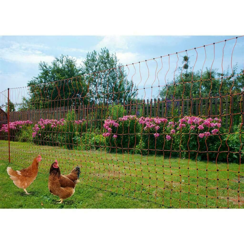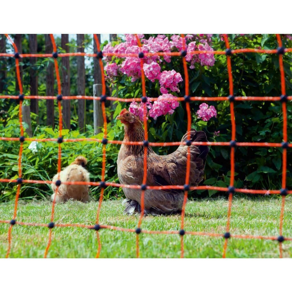 (inclusiv: 1x cablu de conectare a gardului, 1x cablu de împământare, 1x manual de instrucțiuni) - 2x plasă pentru păsări de curte 25 m, 112 cm cu țepușă dublă, portocalie, electrificatoare