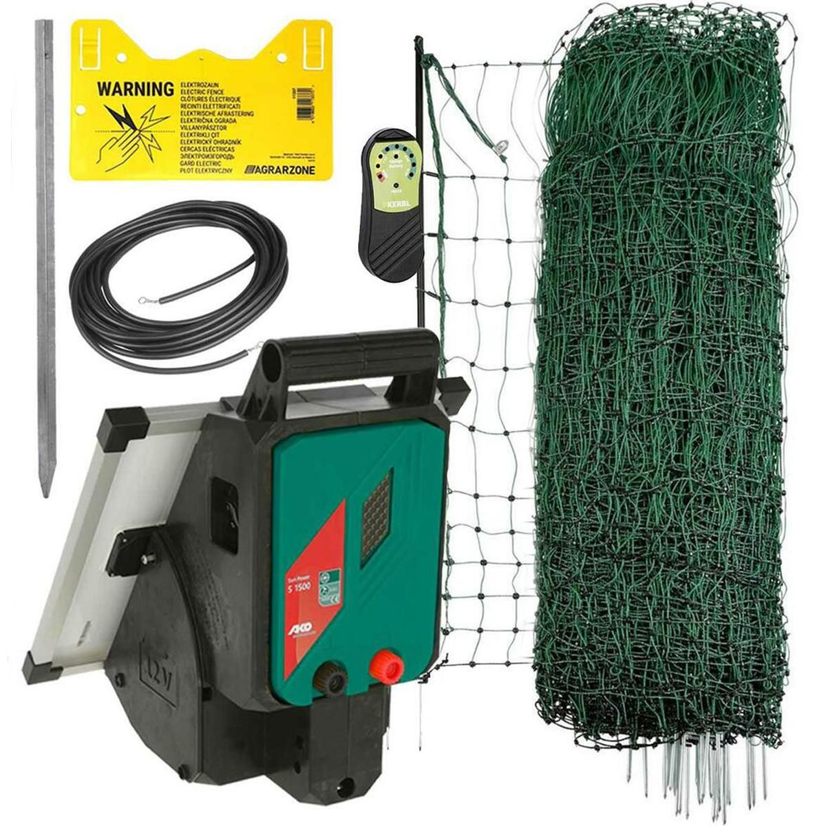 Agrarzone set de gard pentru păsări de curte Sun Power S1500 SOLAR - 50 m plasă de păsări de curte electrificabilă cu aparat de alimentare solar de 12 V pentru garduri de pășune.