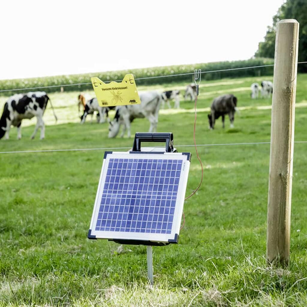 Dacă sunteți în căutarea unui gard pentru păsări de curte mobil și economic, atunci acest set complet de gard pentru păsări de curte cu panou solar este exact ceea ce aveți nevoie! Cu setul nostru de gard pentru păsări Agrarzone cu aparat de alimentare solar, puteți îngrădi în siguranță rațele, gâștele, curcanii, găinile, puii și chiar animalele mici. Aparat de alimentare solar inclus are o baterie integrată de 18 Ah și este alimentat de un panou solar de 15 wați. Acest lucru înseamnă că nu mai este nevoie de o priză sau de reîncărcarea manuală regulată a bateriei. Datorită energiei solare, funcționarea plasei de gard este extrem de economică din punct de vedere energetic - fără costuri costisitoare de întreținere sau de urmărire! Chiar și după o săptămână întreagă fără lumina directă a soarelui, unitatea pentru gardul de pășune are suficientă energie pentru a vă alimenta gardul cu suficientă energie electrică.