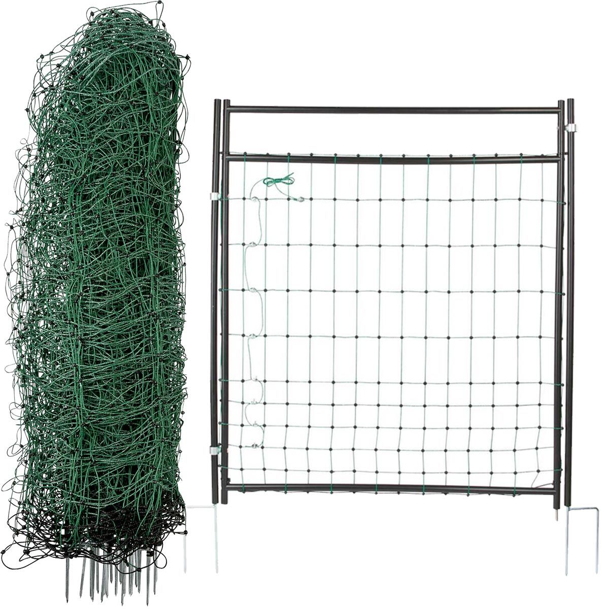 Setul include, de asemenea, două plase electronice de 25 m lungime și 106 cm înălțime, cu ochiuri strânse, cu un vârf dublu stabil. Vârful dublu rezistă foarte bine în solurile pământoase și nisipoase. Ancorele de sol ferme, opritorii de sol și un fir de sol întărit, care nu transportă curent, asigură o poziție fermă și un flux de curent optim permanent.