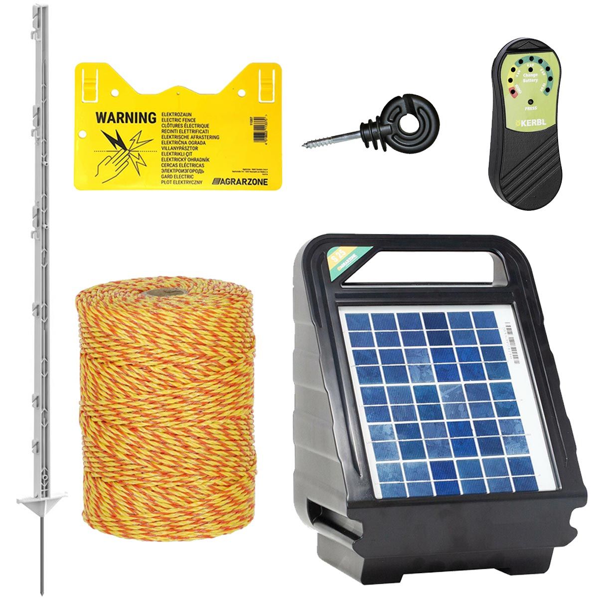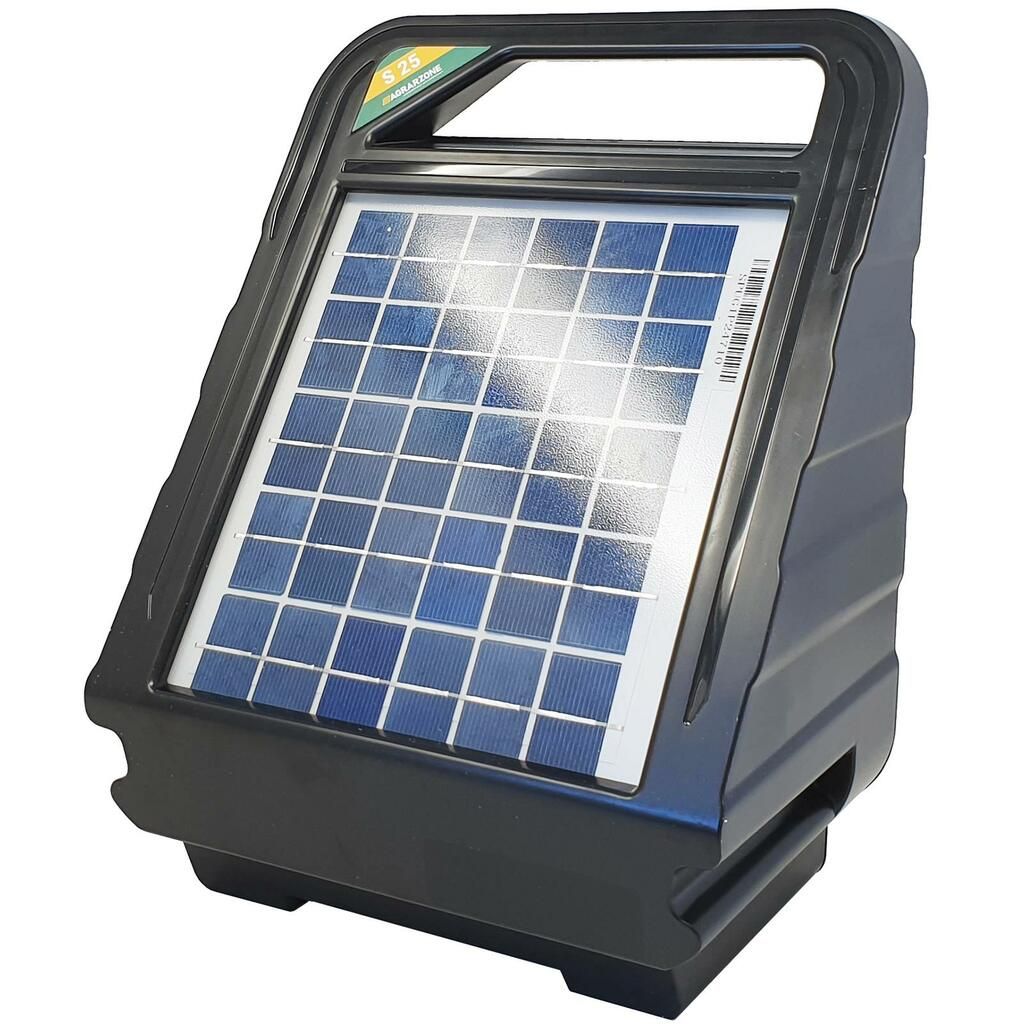 -1x Agrarzone S25 Solar Electric Fence 12 V (inclusiv: 1x baterie AGM de 12 V, 1x modul solar montat permanent, 1x cablu de conectare pentru gard și conexiune la pământ, 1x tijă de împământare, 1x adaptor de rețea de 230 V, 1x manual de utilizare)