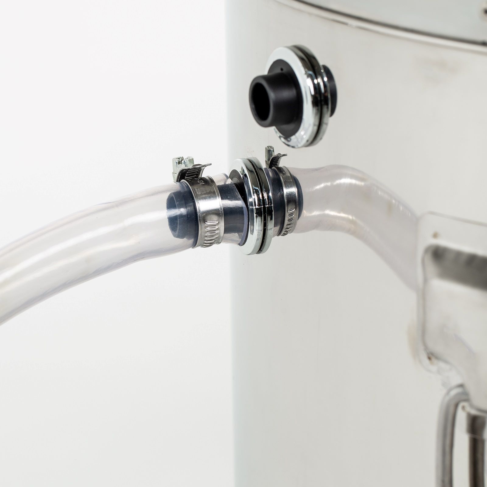 Recipientul exterior al pasteurizatorului pentru brânză și iaurt este realizat dintr-o singură bucată și are o izolație interioară specială. Pereții deosebit de subțiri și un control electronic al încălzirii asigură economii enorme de energie și costuri de încălzire cu noul efect LE (Low Energy Effect). Controlul electronic practic face posibilă setarea temperaturii apei (până la max. 100 °C - în funcție de produsul final dorit) și a timpului de pasteurizare sau de producție dorit. Elementul de încălzire de 2,5 kW încălzește laptele la maximum 90 °C, ucigând astfel toate bacteriile. Temperatura setată pe partea electronică indică temperatura apei, nu temperatura mediului. Vă rugăm să verificați temperatura mediului cu un termometru suplimentar.