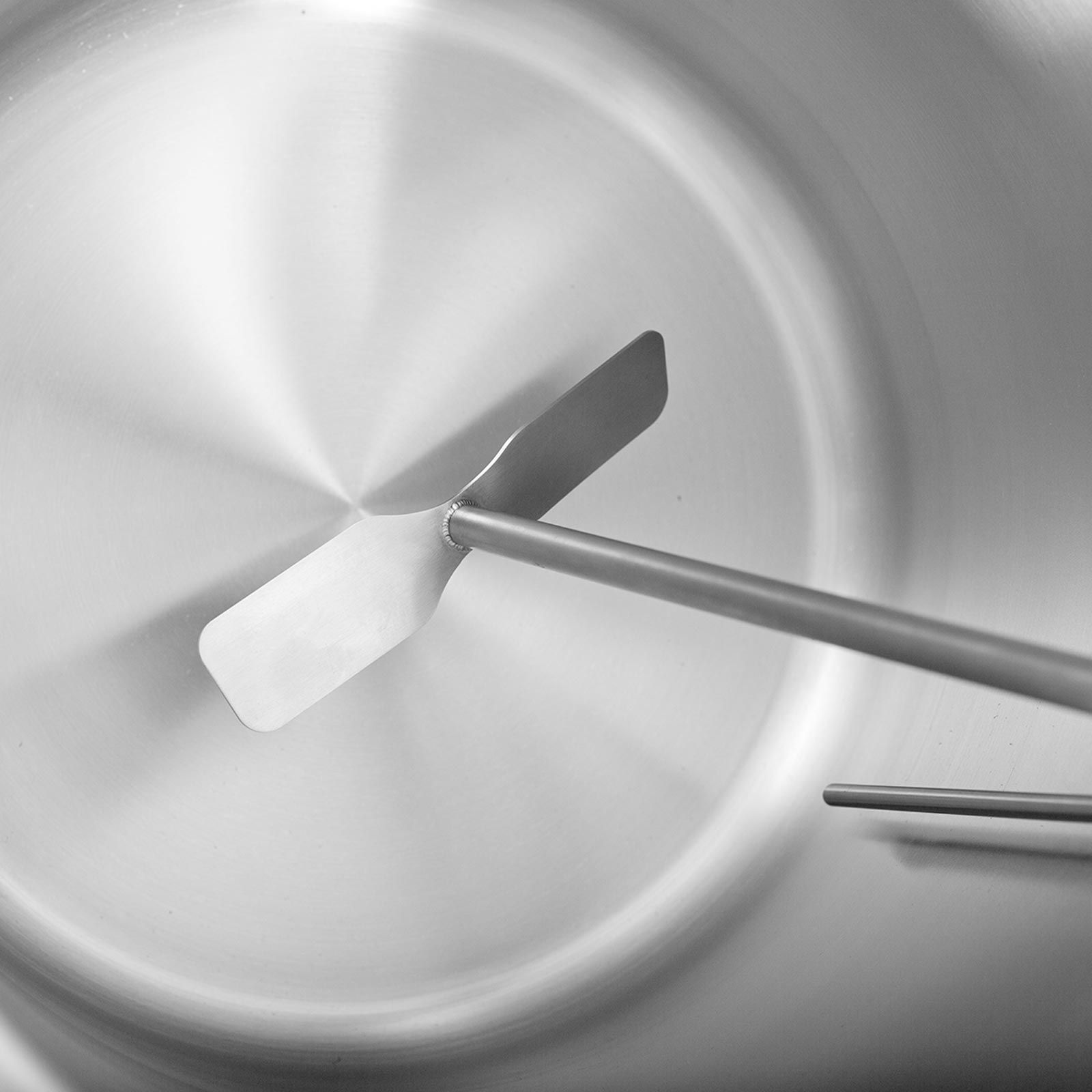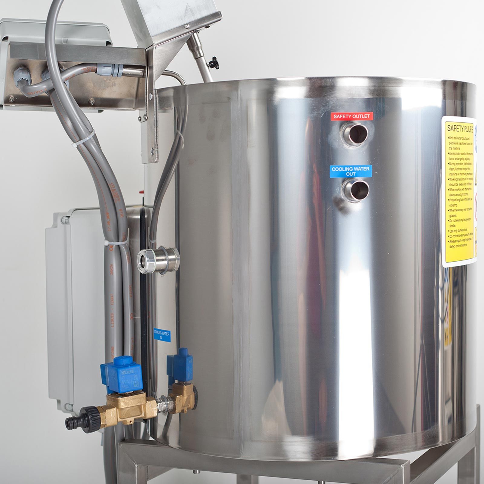 Cazanul se încălzește până când controlul temperaturii atinge temperatura dorită, care este apoi menținută până la sfârșitul ciclului. Procesul se încheie automat cu o oprire automată. Răcirea automată prin schimb de apă răcește mediul la temperatura dorită, iar următoarea etapă de procesare, deja preprogramată, este pornită automat. Agitatorul pentru mixer funcționează la aproximativ 104 rpm și poate fi pornit sau oprit în orice moment. La sfârșitul procesului de producție, produsul lichid este evacuat prin intermediul ieșirii mari DN 50.