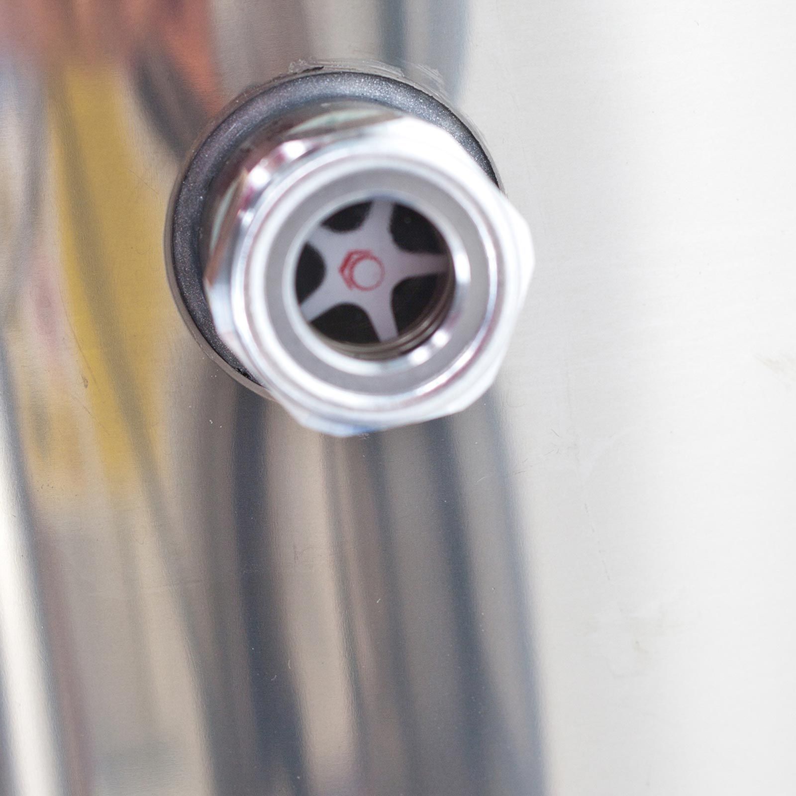 Caracteristica specială a acestui cazan din oțel inoxidabil cu trei pereți, cu o capacitate de umplere de 50 de litri, este construcția sa specială: cazanul exterior este fabricat dintr-o singură bucată, ceea ce evită problemele care pot apărea din cauza cusăturilor sudate. Camera de izolare are o grosime a peretelui de 2,5 mm, oferind astfel cele mai bune valori de izolare și împiedicând încălzirea peretelui exterior și pierderile de energie asociate. Peretele subțire de 1,2 mm dintre cea de-a doua și cea de-a treia cameră permite un transfer foarte bun al temperaturii apei de încălzire către mediu și, astfel, economisește costuri ridicate de energie și de încălzire (efect energetic redus). Pentru o încălzire optimă sunt necesari doar aproximativ 20 de litri de apă. Controlul electronic special al încălzirii garantează că temperatura apei de încălzire este cu maximum 15 °C mai mare decât temperatura mediului. Din acest motiv, abaterea dintre temperatura de afișare și temperatura mediului este de maxim +/- 1 °C, ceea ce economisește energie și costuri de încălzire.