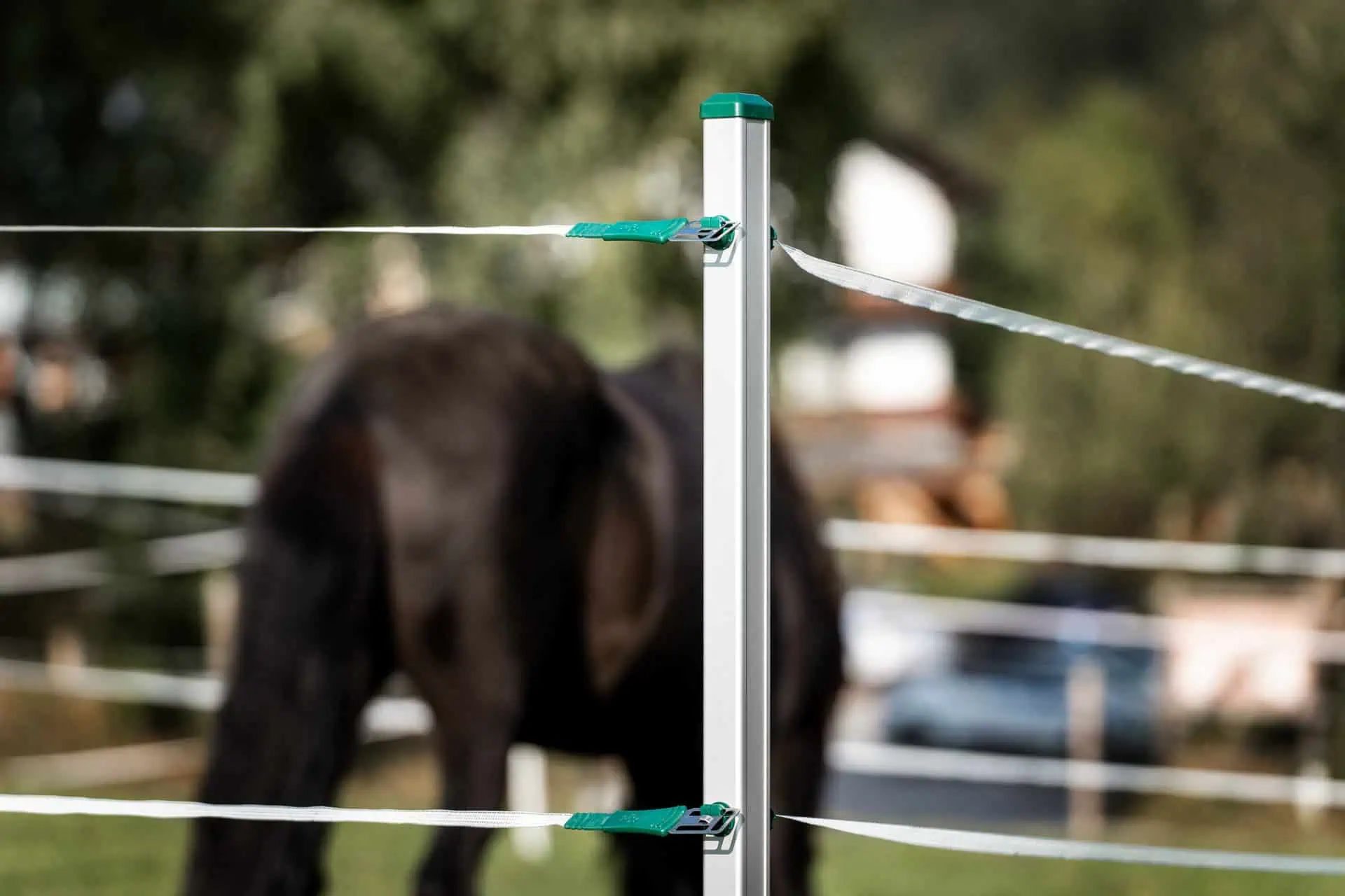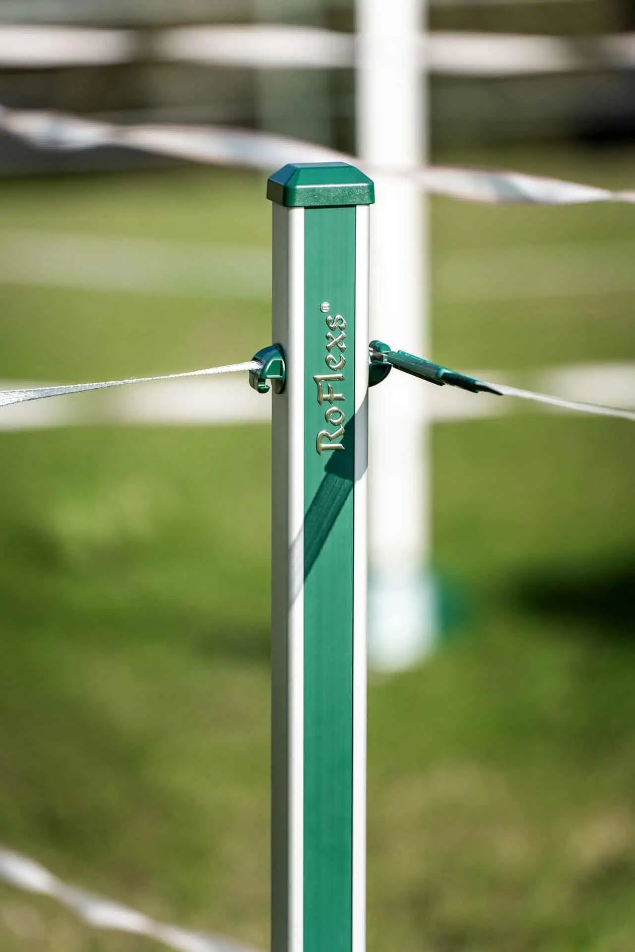 Cu padocurile sale mobile, RoFlexs vă oferă o soluție de gard flexibil și sigur, care poate fi asamblată și demontată în câteva secunde - ideală pentru pășuni, turnee sau călătorii. Stâlpii robusti din aluminiu asigură stabilitate și protecție animalelor dumneavoastră. Fiind un sistem multiplu premiat fabricat în Germania, RoFlexs combină mobilitatea și confortul la cel mai înalt nivel. Experimentați libertatea și securitatea oferite de aceste sisteme inovatoare de gard.