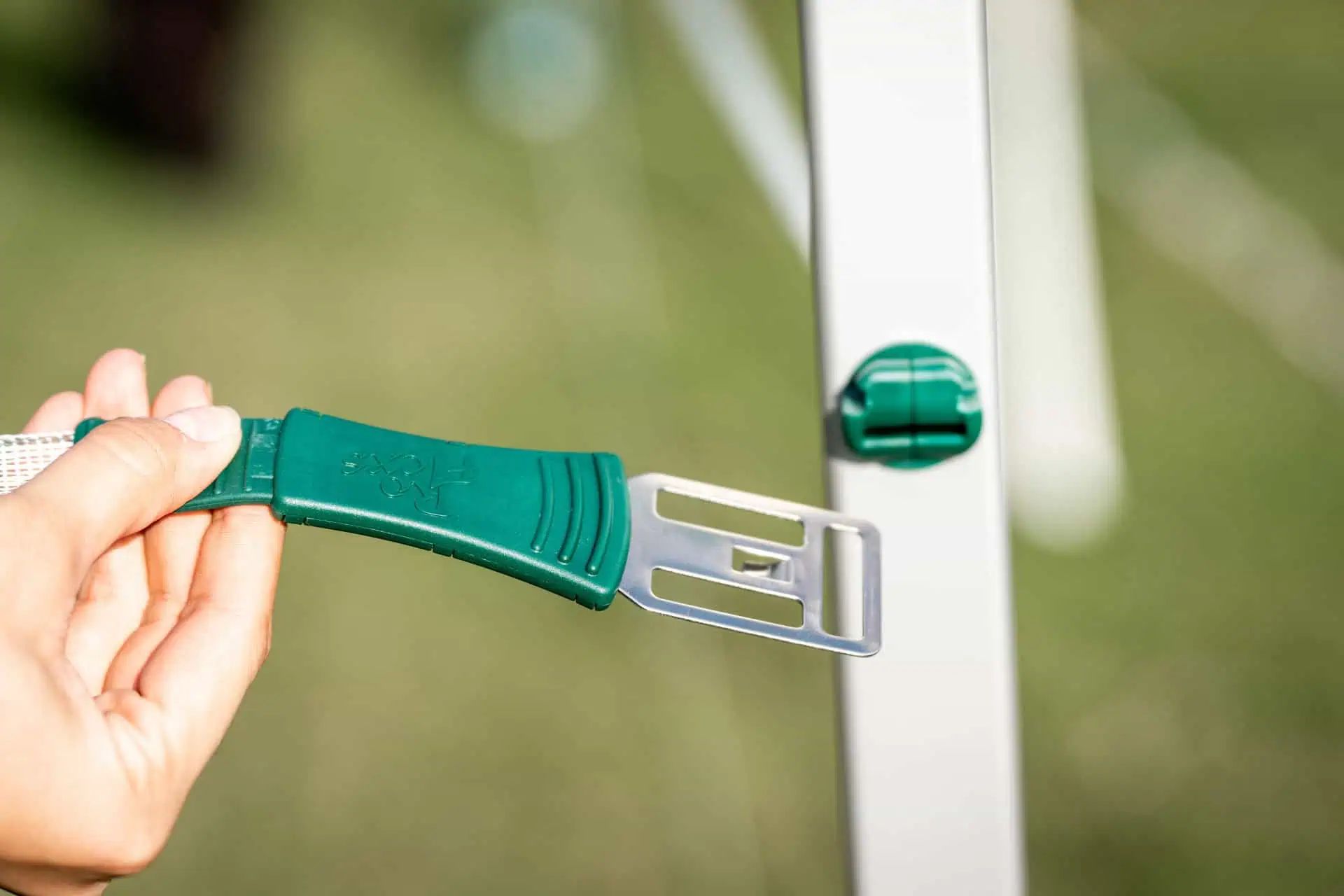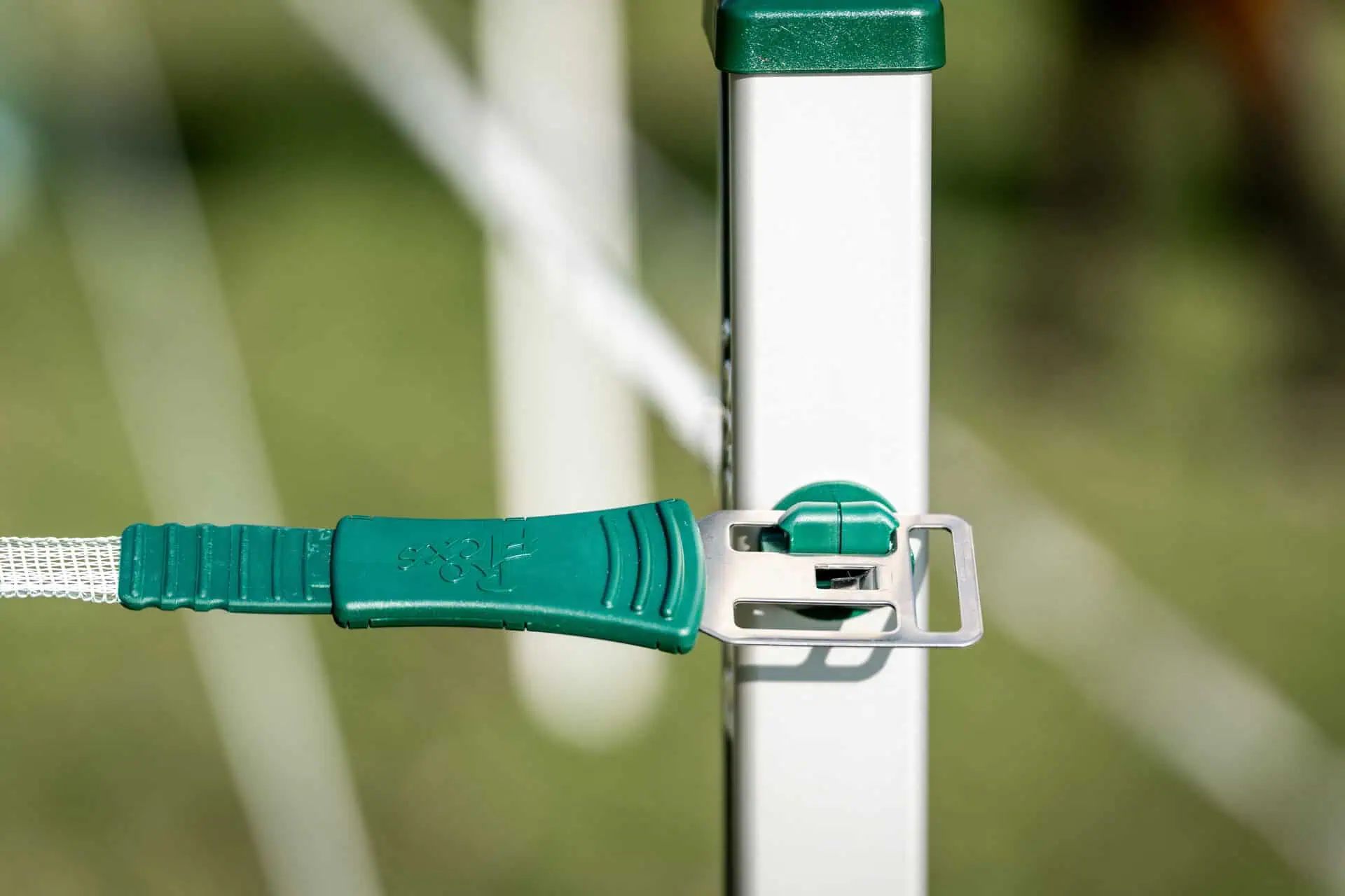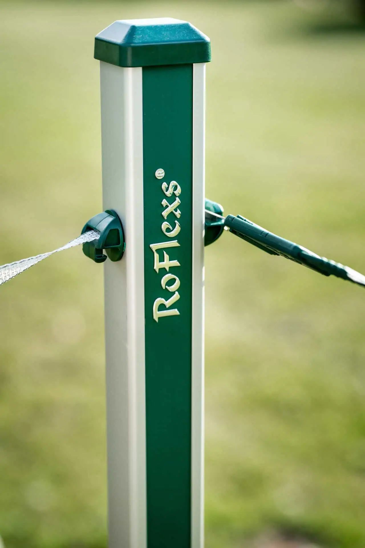 Opțiunile de asamblare versatile + flexibile fac din sistemul de garduri RoFlexs Premium un partener de turneu pe care nu vreți să îl ratați. Padocul poate fi montat și demontat în doar câțiva pași, ceea ce permite, bineînțeles, și o schimbare rapidă a locației.