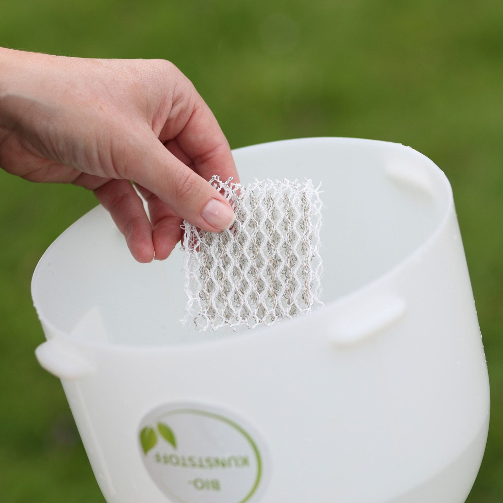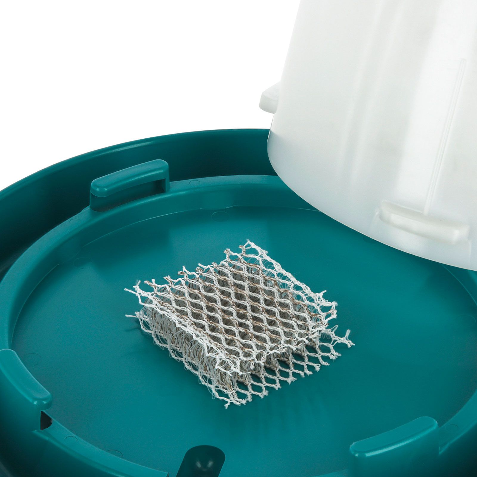 Dacă doriți să le oferiți prietenilor dvs. cu pene apă de băut permanent curată și fără germeni , atunci covorașul antigermeni Silvertex® Good Water este completarea ideală pentru adăpătorul pentru păsări. Covorașul Anti-Germ Mat este un covoraș textil acoperit cu argint pentru conservarea apei din adăpătoarele pentru păsări de curte. Sistemul de autodozare garantează protecția împotriva germenilor și a biofilmelor timp de până la 12 luni. Covorașul argintiu de 5 x 5 cm poate fi utilizat în mod universal în toate adăpătoarele cu un volum de până la 20 l și conservă până la 3600 l de apă.