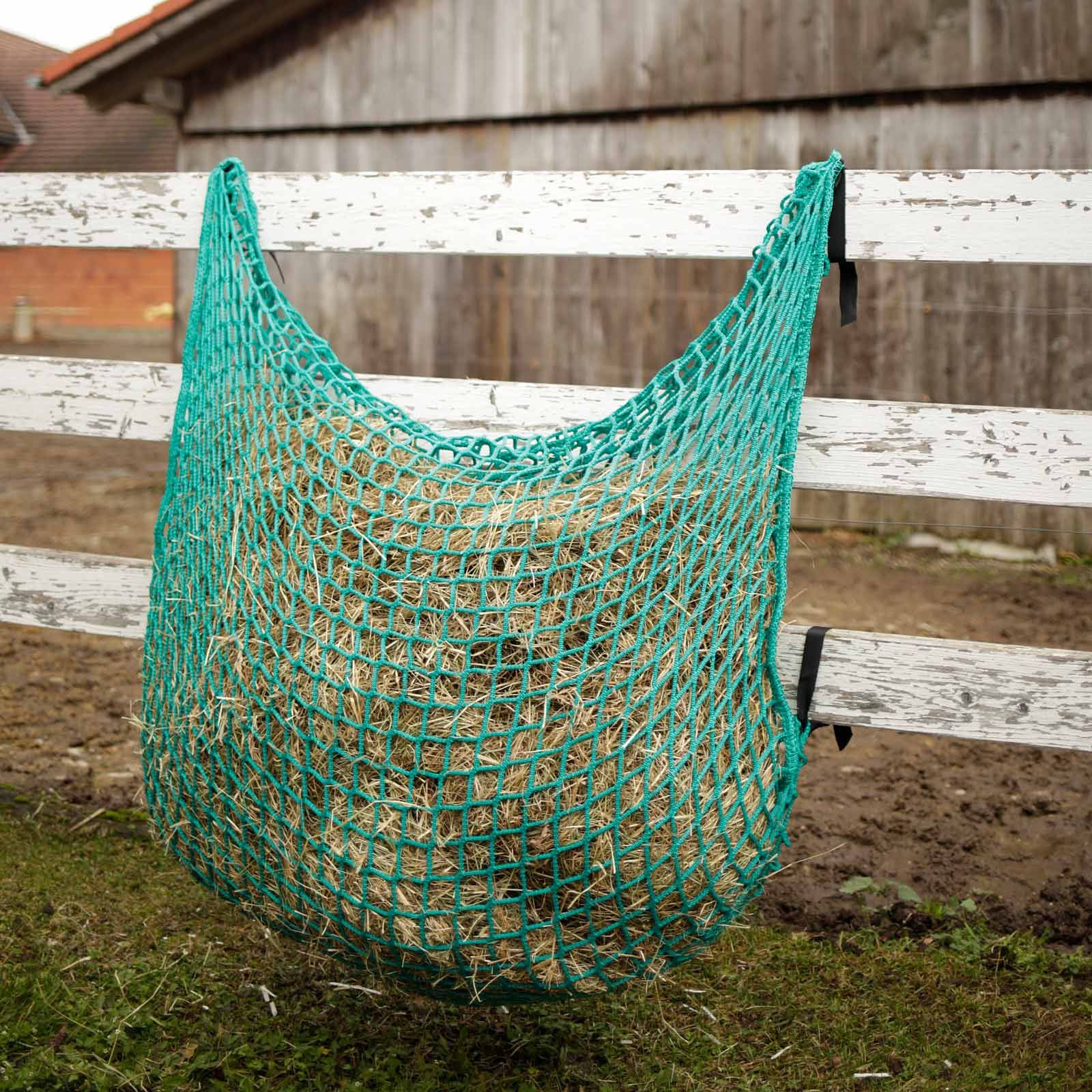 Plasa pentru fân practică și rapid de umplut flexiStrong este ideală pentru hrănirea cu fân în boxa calului, în padoc sau pe pășune. Cu ajutorul curelelor practicecu închizătoare rapide, sacul de fân poate fi agățat cu ușurință pe gard sau în grajd și umplut cu fân proaspăt și liber de sus.