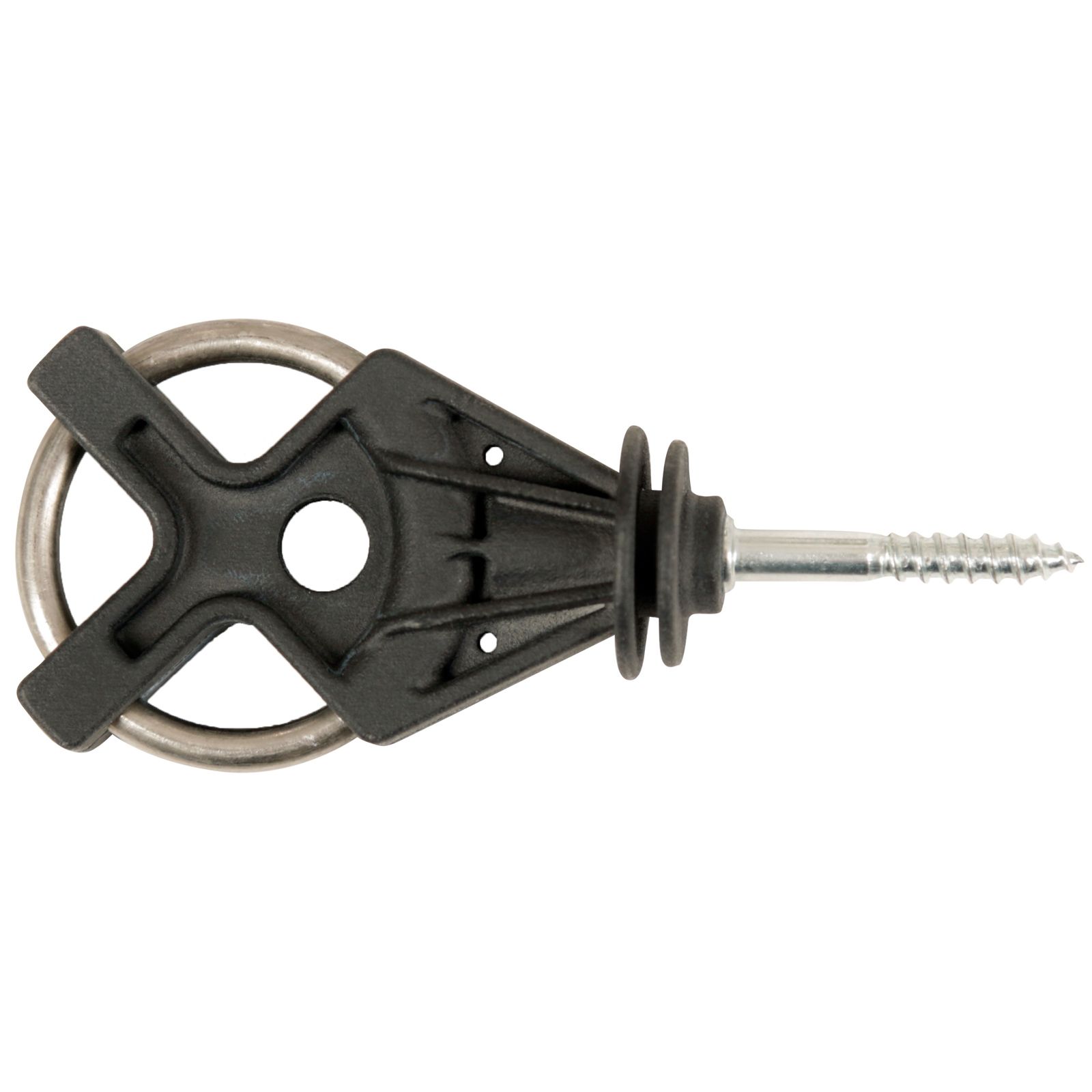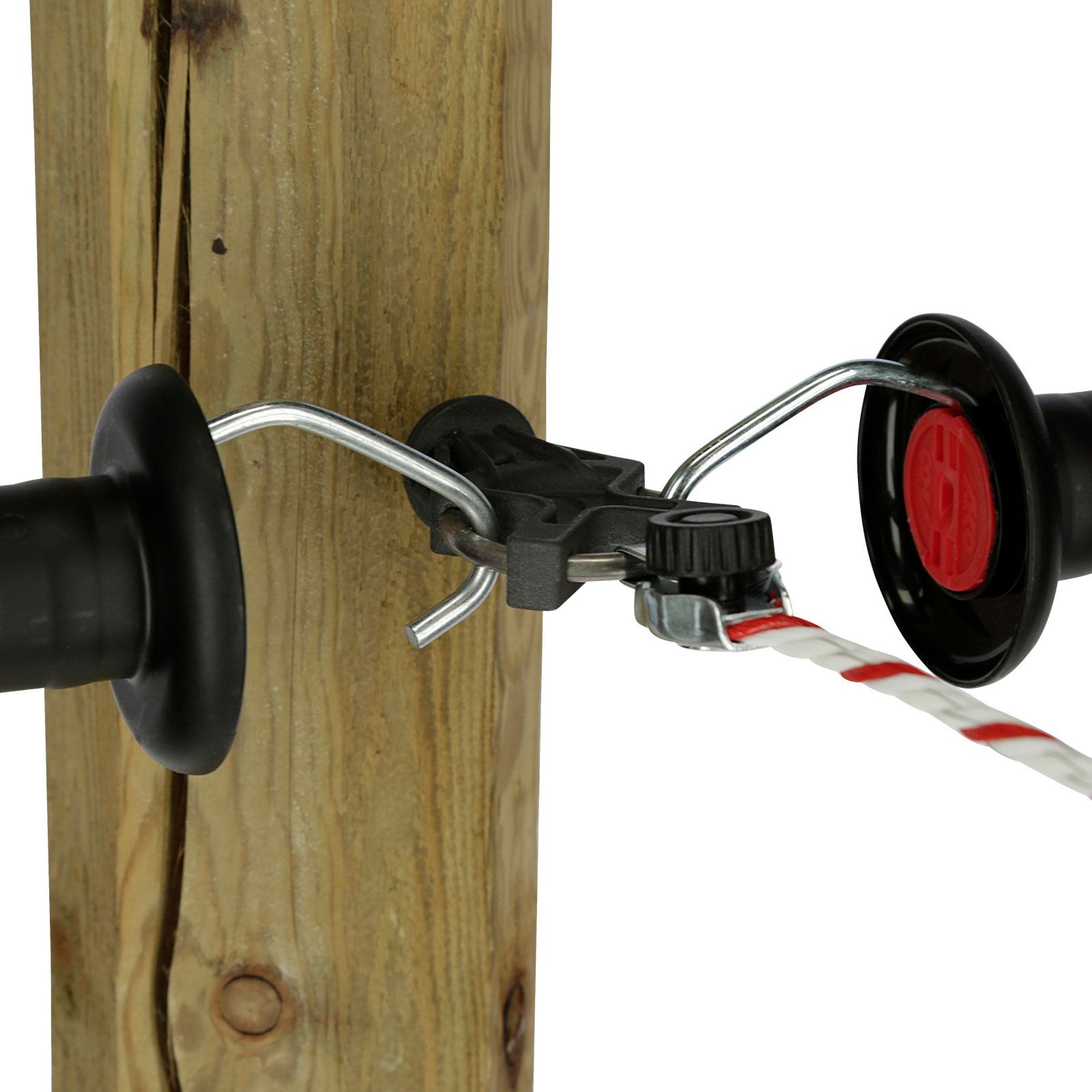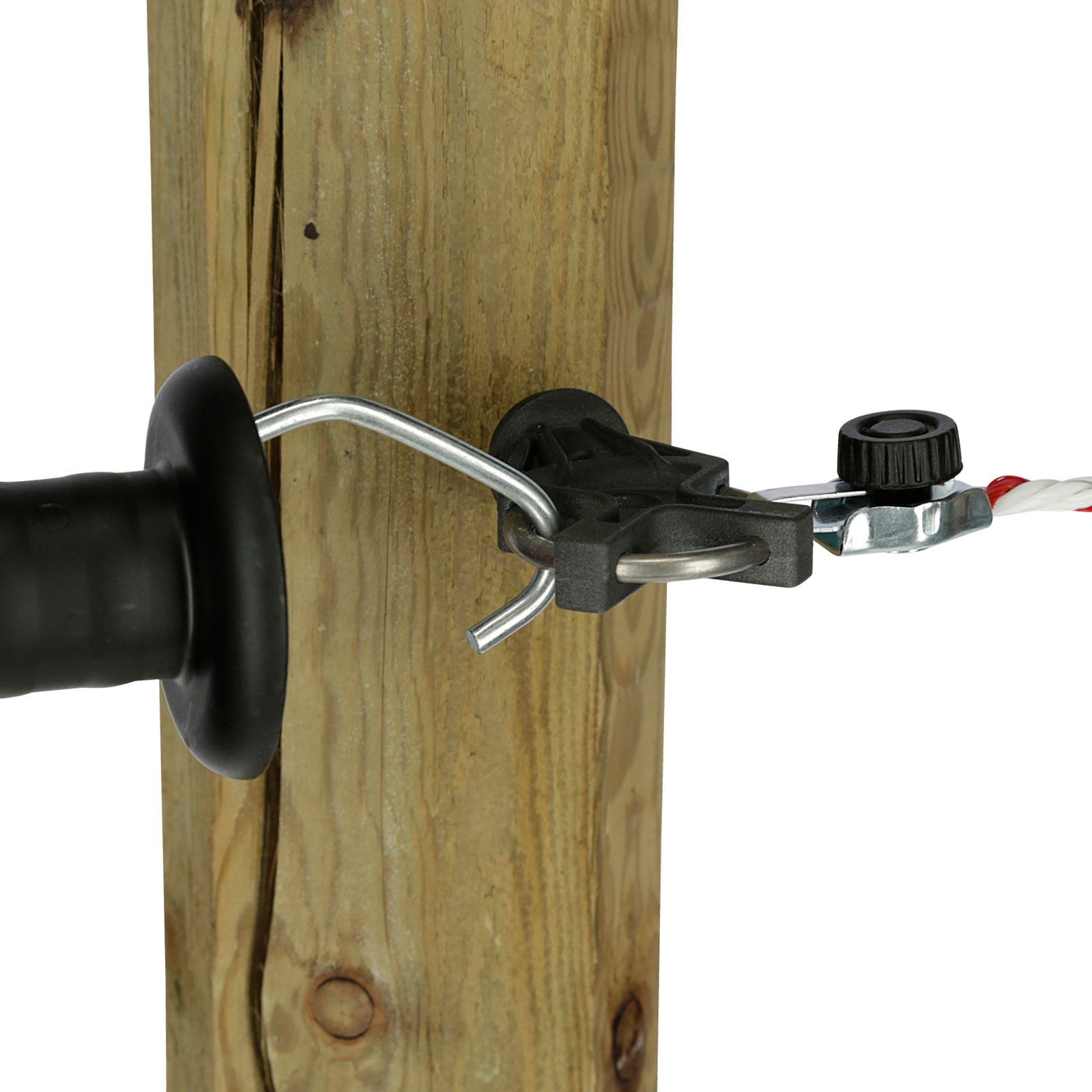Cu acest nou izolator de poartă, foarte robust, vă puteți proiecta sistemul de garduri pentru pășuni flexibil. Izolatorul este format dintr-un inel galvanizat și are trei opțiuni de agățare pentru mânerele de poartă sau pentru fixarea materialului conductor, cum ar fi firul sau frânghia.