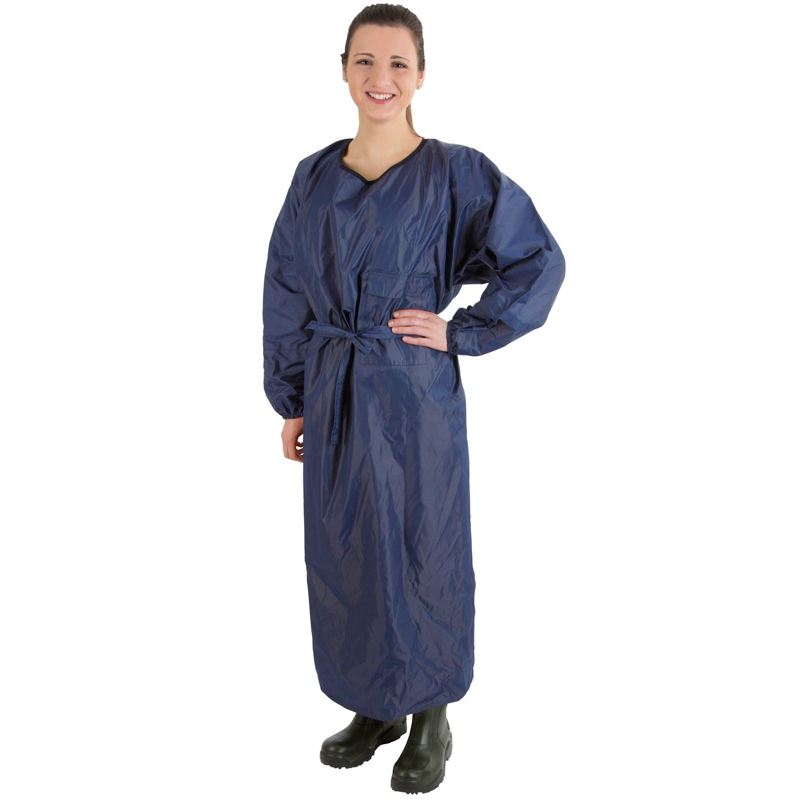 Acest șorț de grajd cu mâneci lungi impresionează prin materialul oxford impermeabil, ușor ca o pană și prin confortul ridicat la purtare. Excelent pentru lucrări de curățenie sau muls