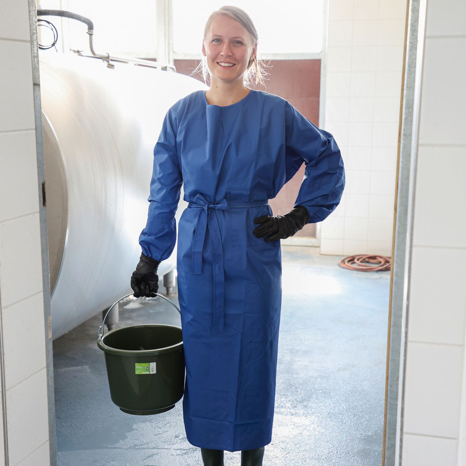 Șorțul durabil Kerbl pentru muls și spălat este un instrument excelent oriunde apa poate deveni o problemă. Șorțul s-a dovedit a fi cel mai bun pentru munca de curățenie în hambar, dar este foarte potrivit și pentru muls sau pentru examinările veterinare.