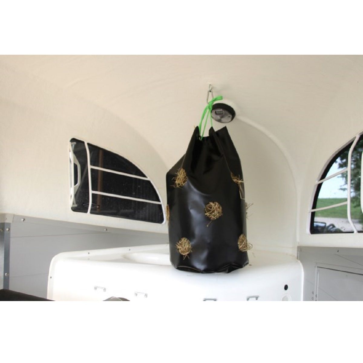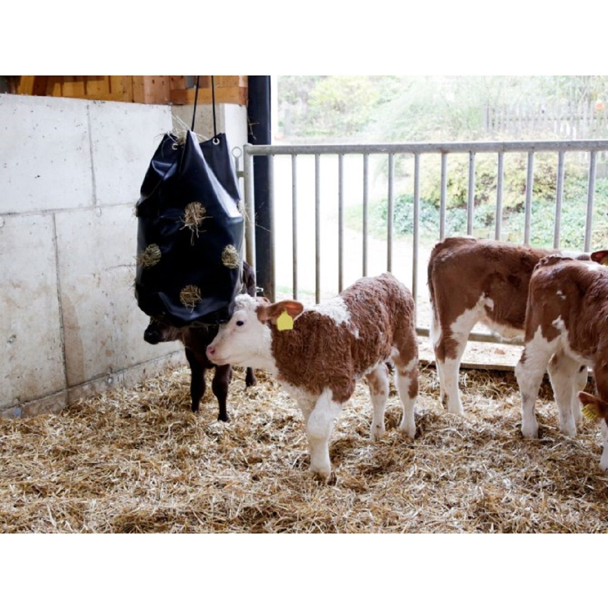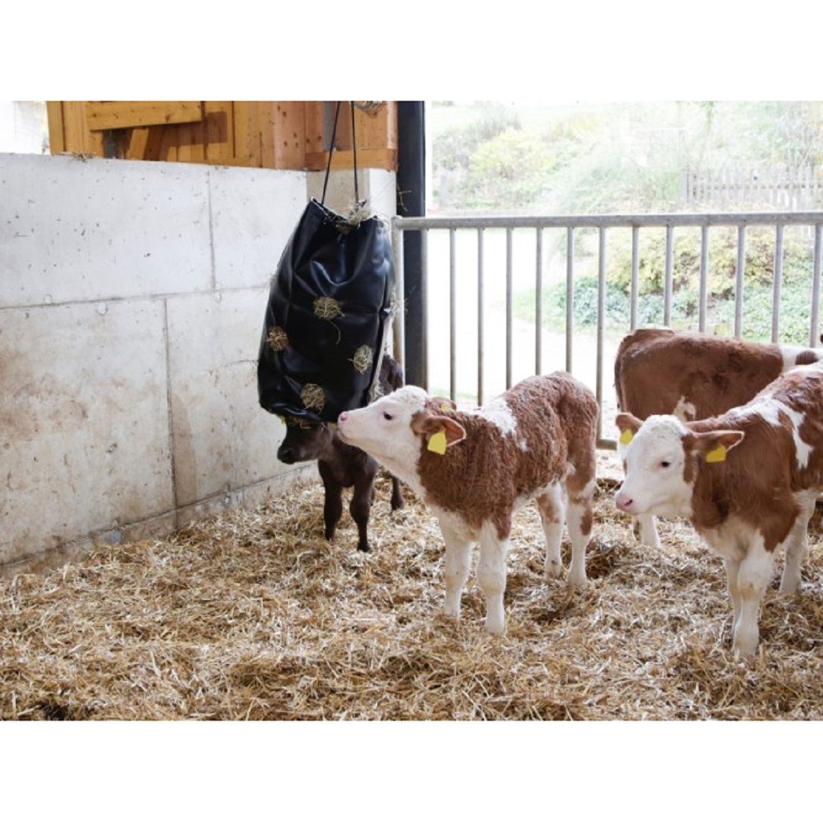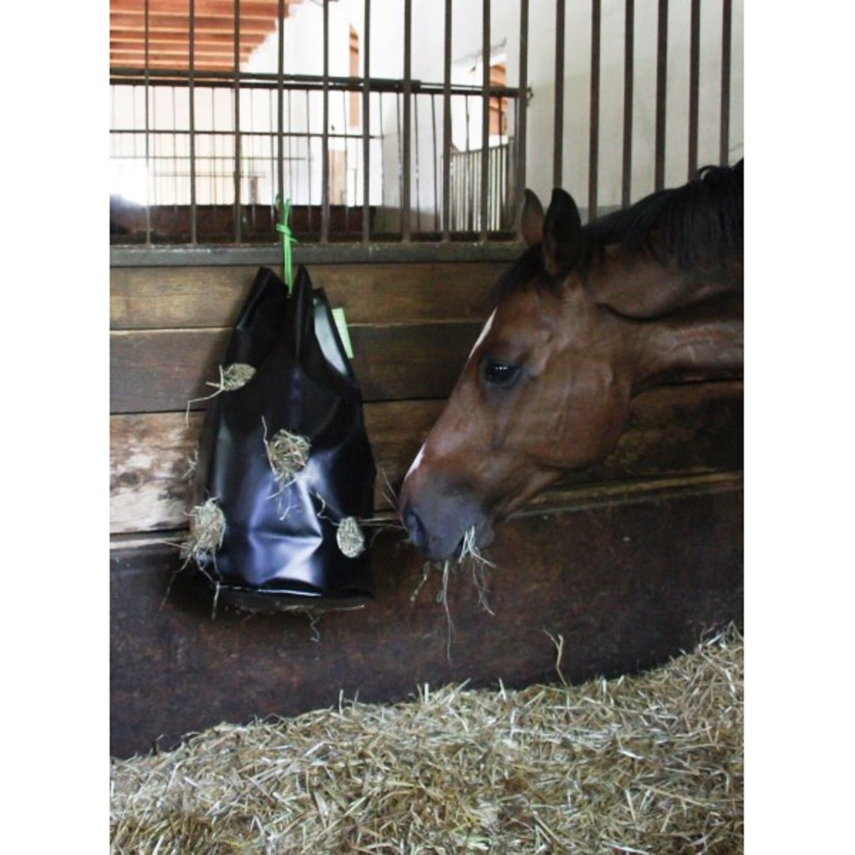 Sacul de fân de la Kerbl combină multe avantaje într-un singur produs. Spre deosebire de hrănirea cu fân pe sol, pierderile de hrană sunt reduse cu aproximativ 15% și, în același timp, este încurajată hrănirea lentă, prietenoasă cu calul. Spre deosebire de plasele de fân, sacul de fân HayBag este foarte ușor de umplut și ușor de curățat. Suprafața netedă reduce riscul de rănire. HayBag este versatil și poate fi folosit în boxa calului, pe pășune, în remorcă și la turnee. Diametrul găurii este de aproximativ 8 cm.