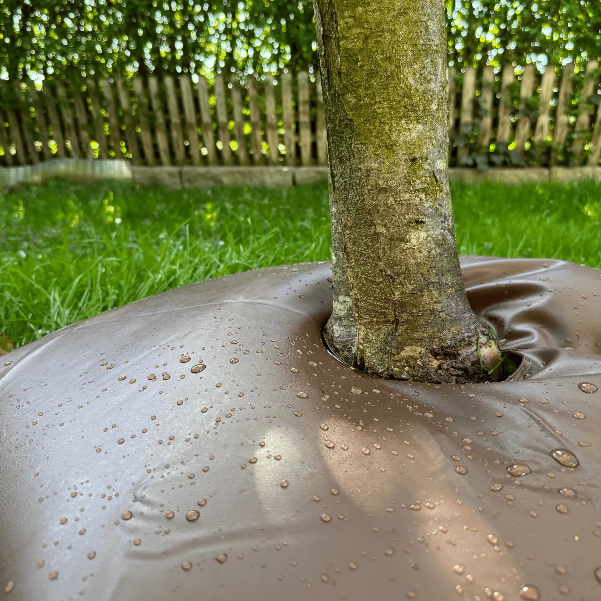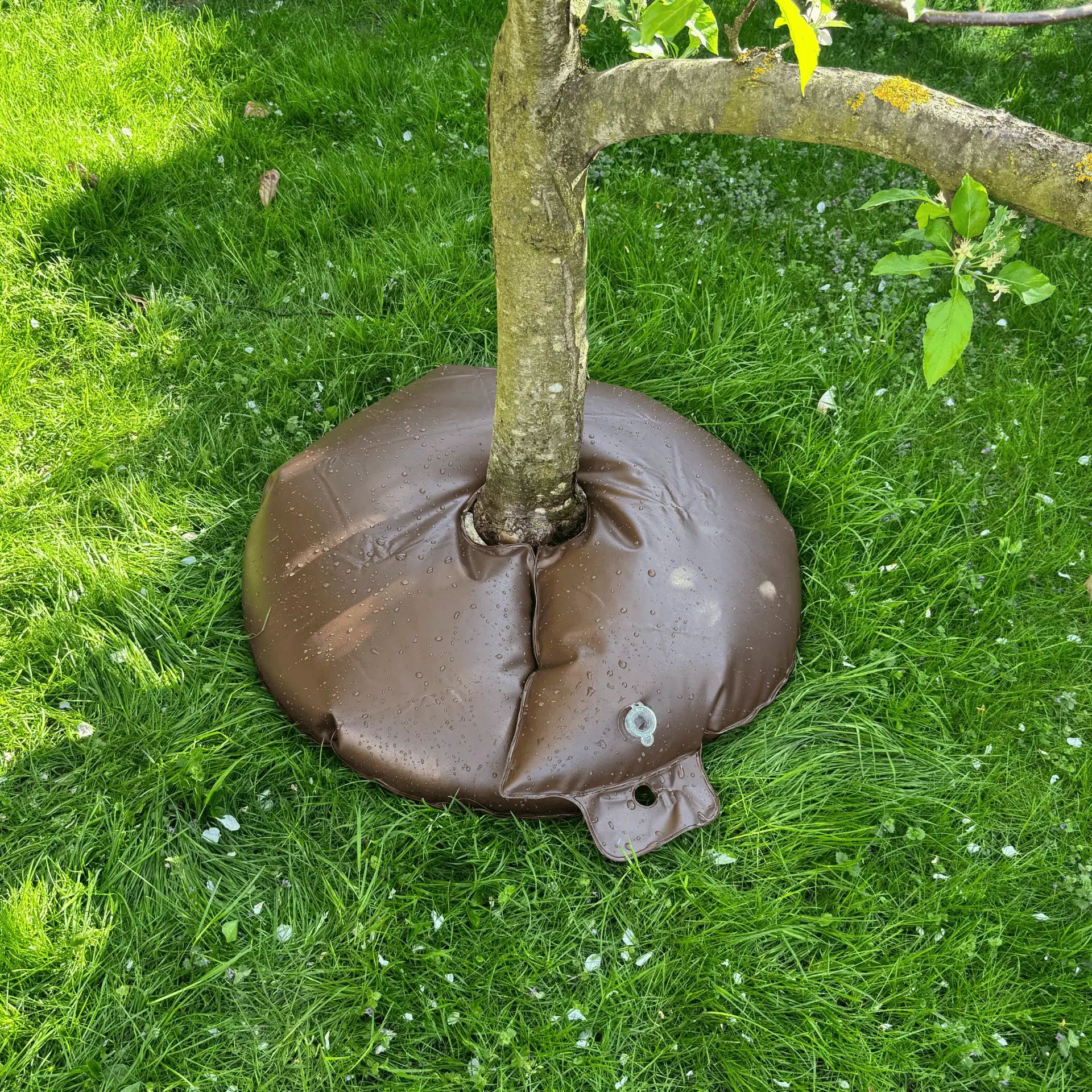 Inelul de irigare a copacului se plasează rapid și ușor în jurul trunchiului copacului și poate fi apoi umplut cu apă. Datorită irigării pe termen lung, arborii sunt alimentați cu apă pentru o perioadă mai lungă de timp, chiar și în perioadele secetoase, iar udarea selectivă a rădăcinilor este garantată. Punga de apă protejează copacii, în special pe cei tineri, cu rădăcini încă scurte, împotriva uscării. Inelul de udare este potrivit pentru copaci cu trunchiuri de până la Ø 15 cm.