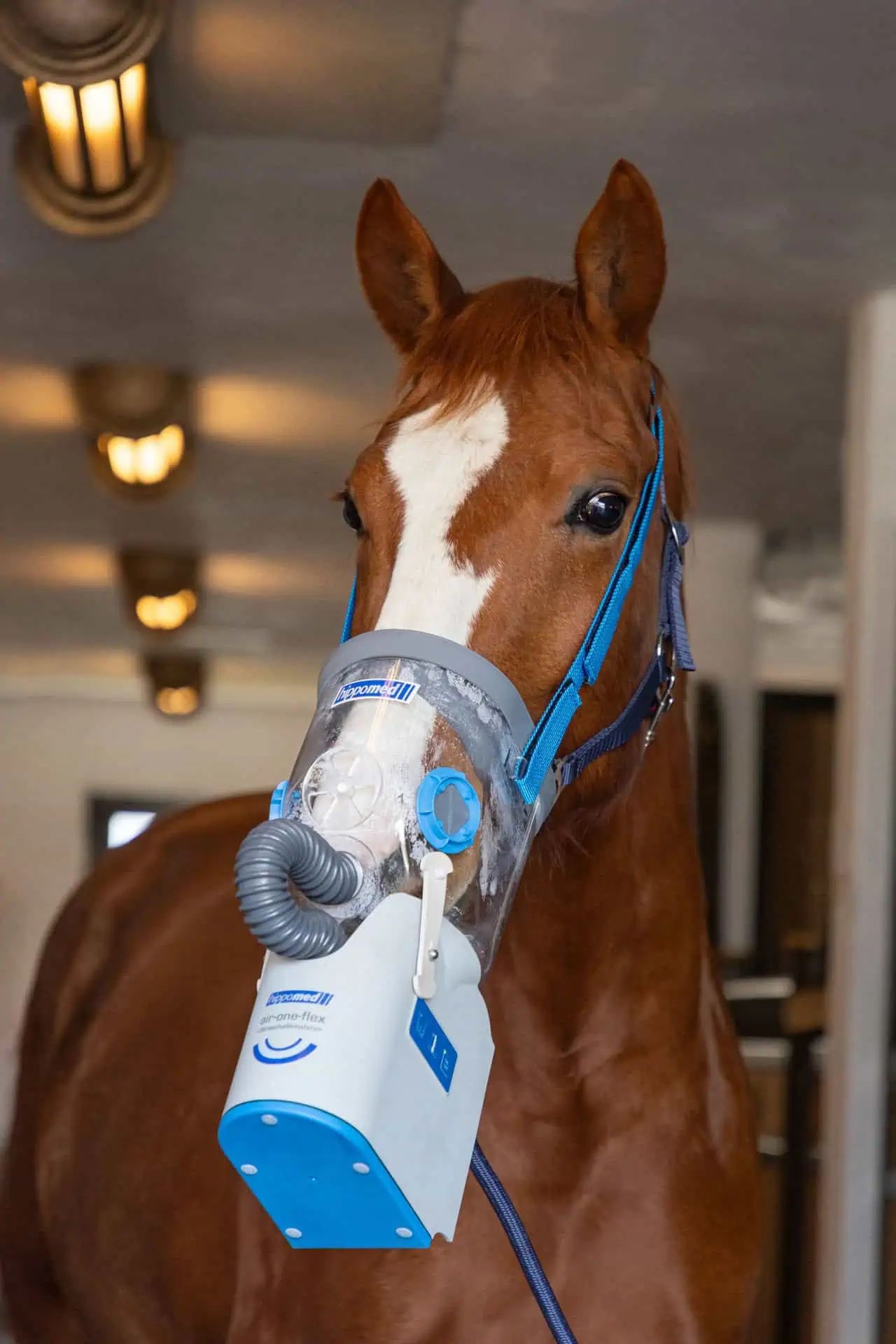 Inhalatorul AirOne este un nebulizator cu ultrasunete de înaltă calitate pentru terapia de inhalare țintită a tractului respirator la cai. În special în stare de repaus, în timpul inhalării este posibilă umezirea optimă a zonei bronșice până la alveole. Astfel, inhalatorul pentru cai poate fi utilizat ca terapie țintită pentru bolile respiratorii. Domeniile de utilizare a inhalatorului pentru cai sunt alergiile la praf, polen și ciuperci, umezirea (RAO/COB/COPD), tusea cailor, bronșita, ciupercile/acarienii din plămâni, infecțiile bacteriene și alte iritații ale tractului respirator. Medicii veterinari și proprietarii de cai au obținut deja rezultate convingătoare cu inhalatorul pentru ecvidee.