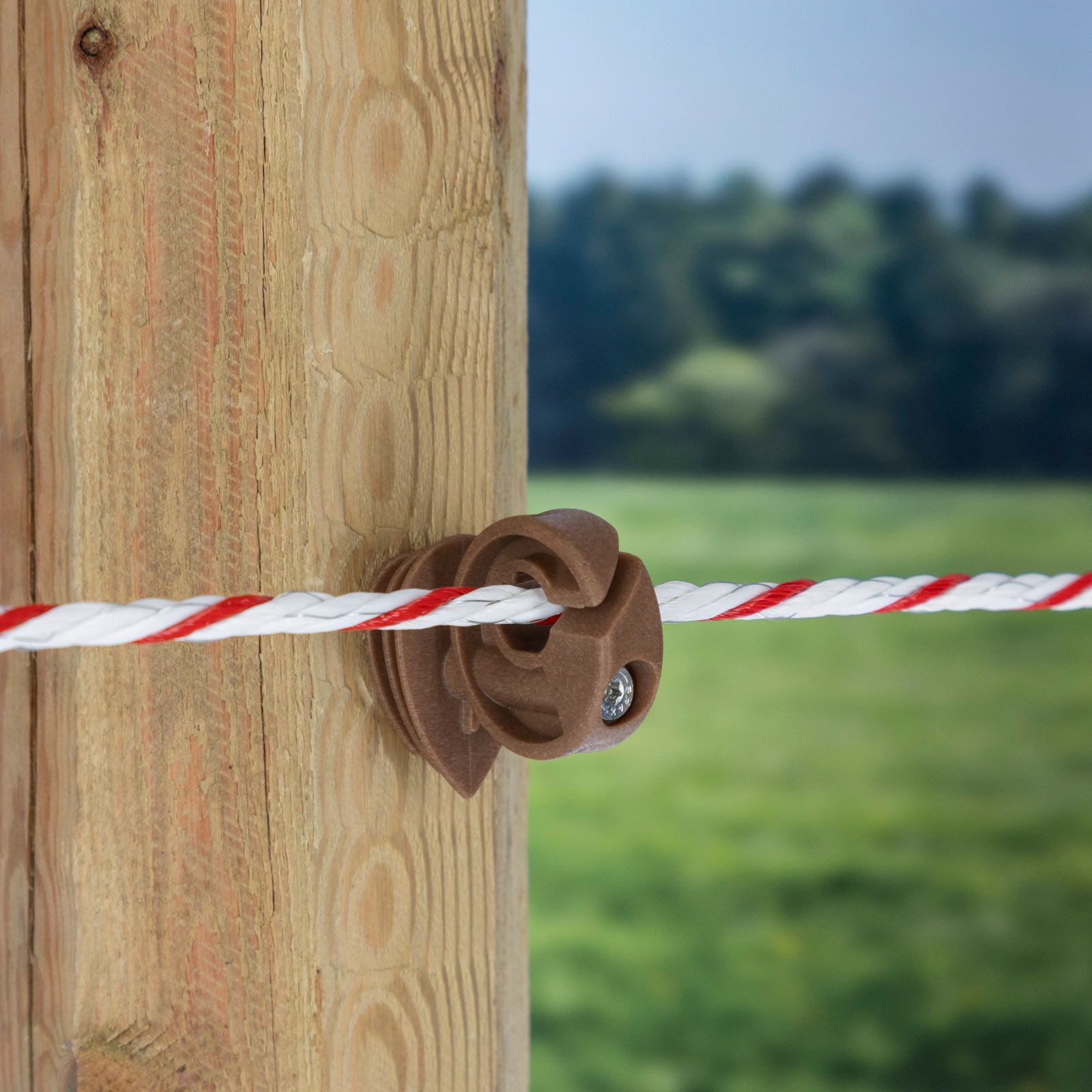 Acest izolator inelar de calitate superioară, în pachet de 50x bucăți, este perfect pentru fermierul conștient de natură, căruia îi pasă de sustenabilitate și de protejarea mediului înconjurător. Easy Drill SX este fabricat din plastic biologic din materii prime 100% regenerabile. În plus față de producția sa atentă în Germania, se caracterizează printr-un grad ridicat de robustețe, cele mai bune proprietăți de izolare și o durabilitate îndelungată pe parcursul multor ani. În plus, are un aspect incredibil de calitativ datorită micilor așchii de lemn natural încorporate în bioplastic. Izolatorul inelar este ideal pentru sârmă, cablu, fire și bandă de până la 10 mm. Șurubul pentru lemn de înaltă calitate (5 x 80 mm) este inclus separat și permite ca izolatorul să fie instalat rapid și ușor cu ajutorul unei șurubelnițe fără fir; nu este necesară o șurubelniță separată. La sfârșitul duratei de viață a produsului, izolatorul inelar din bioplastic și șurubul pot fi separate și reciclate separat. Desigur, durabilitatea este, de asemenea, o prioritate pentru materialul de ambalare.