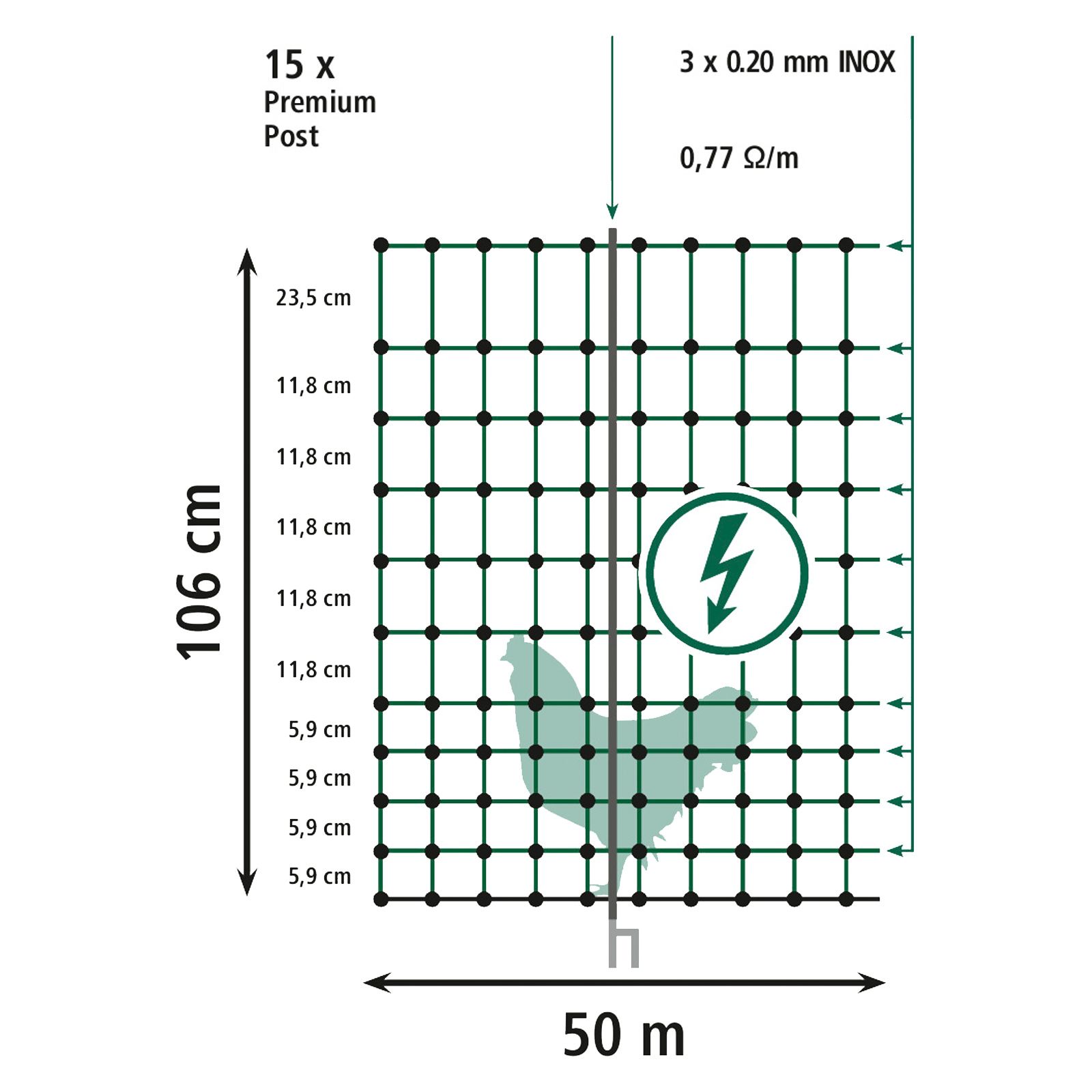 - 106 cm înălțime, plasă de 25 m / 50 m cu tăruș dublu