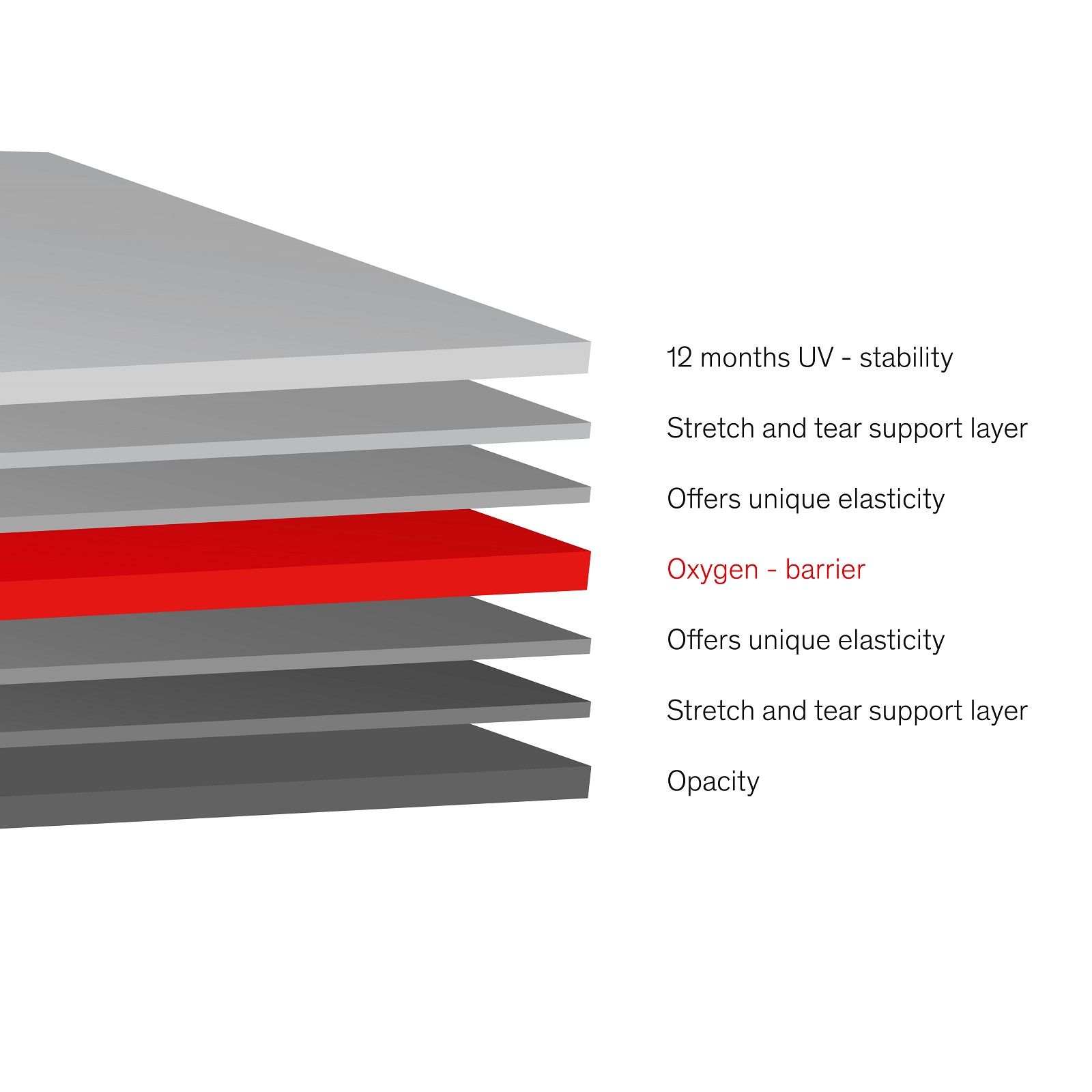 Un număr mare de proprietăți excepționale fac ca această folie de însilozare să fie unică. Combinația dintre cele 7 straturi și greutatea redusă combină avantajele capacului clasic de siloz cu o singură folie. Bariera excelentă împotriva oxigenului împiedică pătrunderea oxigenului în furaj. Calitatea silozului și stabilitatea aerobă a acestuia sunt astfel asigurate în permanență la cel mai înalt nivel. Valoarea nutritivă a silozului de înaltă calitate este păstrată.