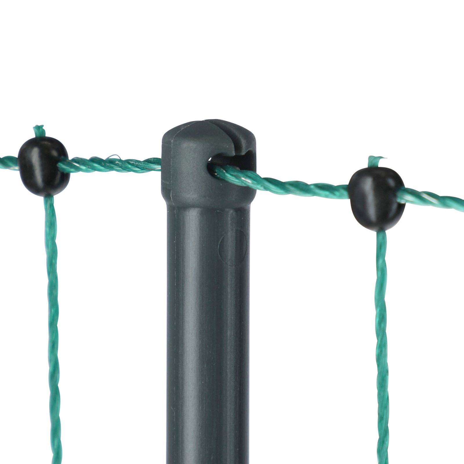 Noul izolator de cap este pulverizat împreună cu stâlpul în cadrul unui proces de producție și garantează o fixare permanentă de reținere. Designul rotunjit, care este de asemenea nou, previne ca firele să se agațe atunci când plasele sunt rulate în sus și în jos. Vârful dublu galvanizat al țărușului a fost extins și asigură o ancorare și mai sigură în sol. De asemenea, țărușul stă ferm și sigur în teren umed sau moale.
