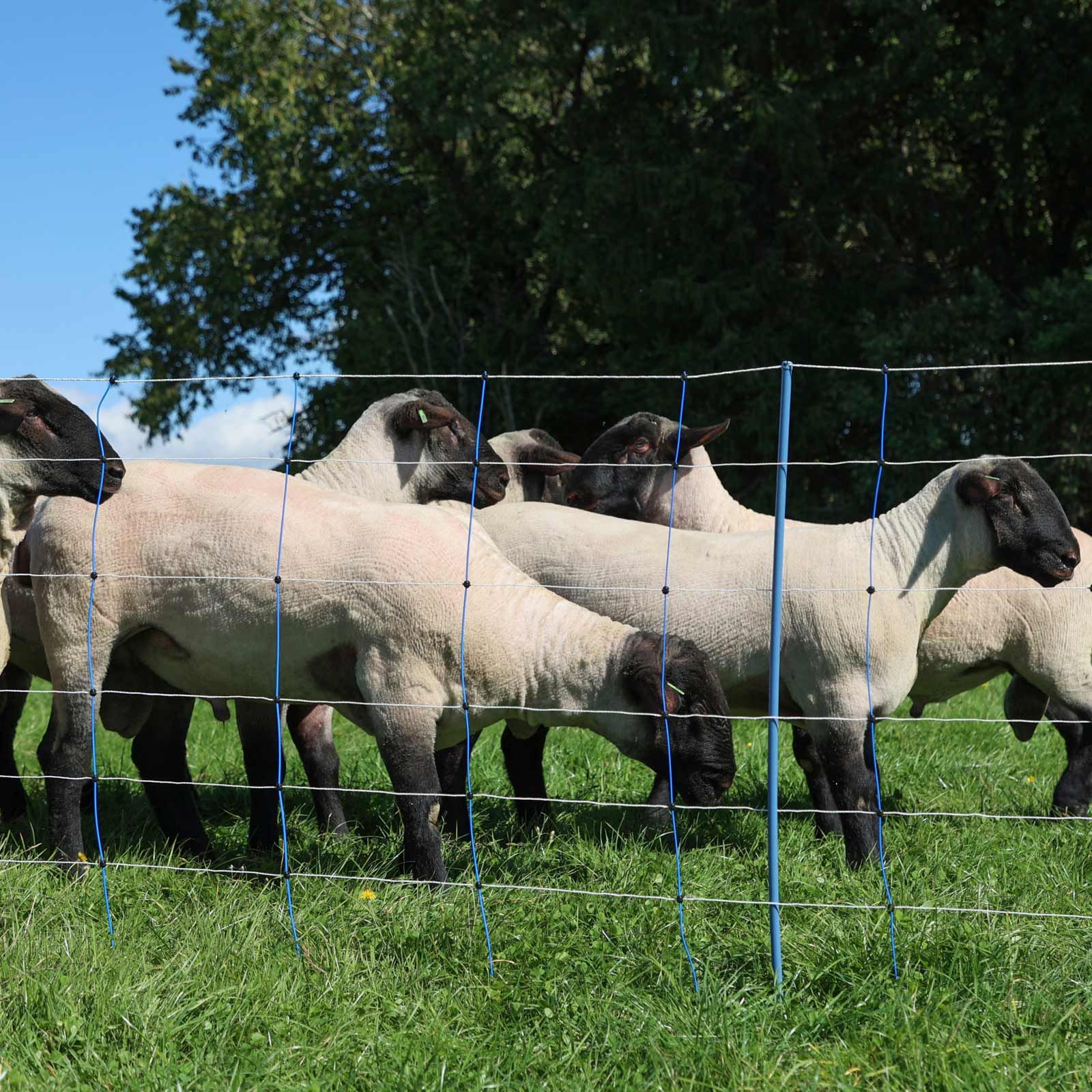 Echipată cu noii țăruși PREMIUM, această plasă complet nouă combină punctele forte dovedite ale plasei pentru oi TitanNet cu cele mai versatile opțiuni de conectare pentru utilizarea profesională în creșterea oilor. Plasa de ovine cu o lungime de 50 m poate fi utilizată în mod universal și oferă oilor, caprelor, mieilor etc. o siguranță maximă în timpul pășunatului. Combinația de culori albastru și alb asigură o vizibilitate foarte bună - ideală pentru utilizarea în controlul animalelor sălbatice și al lupilor.