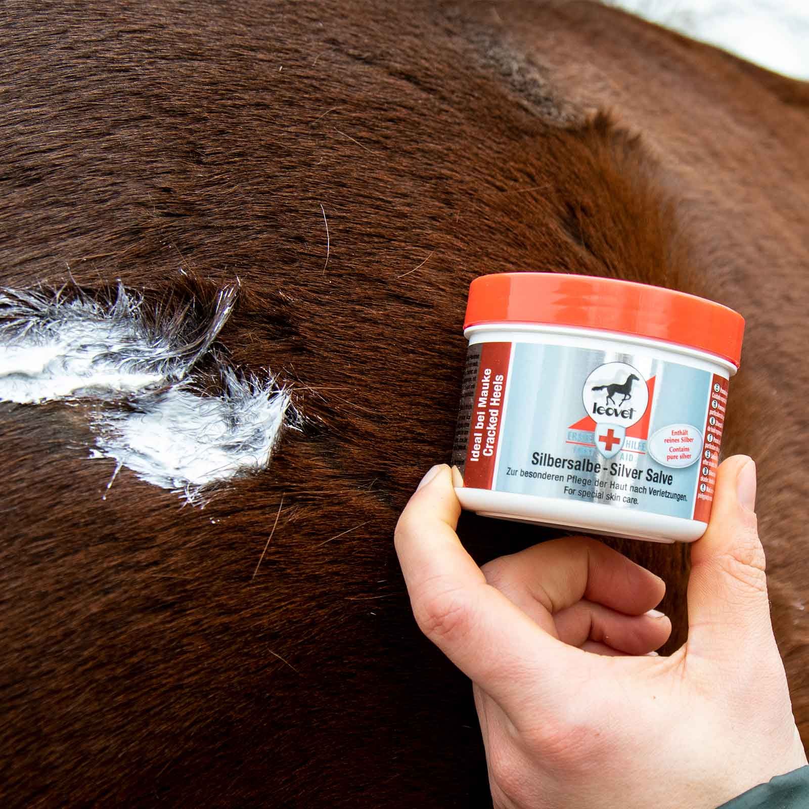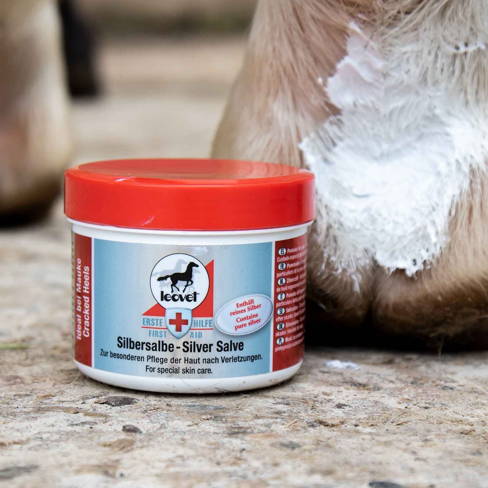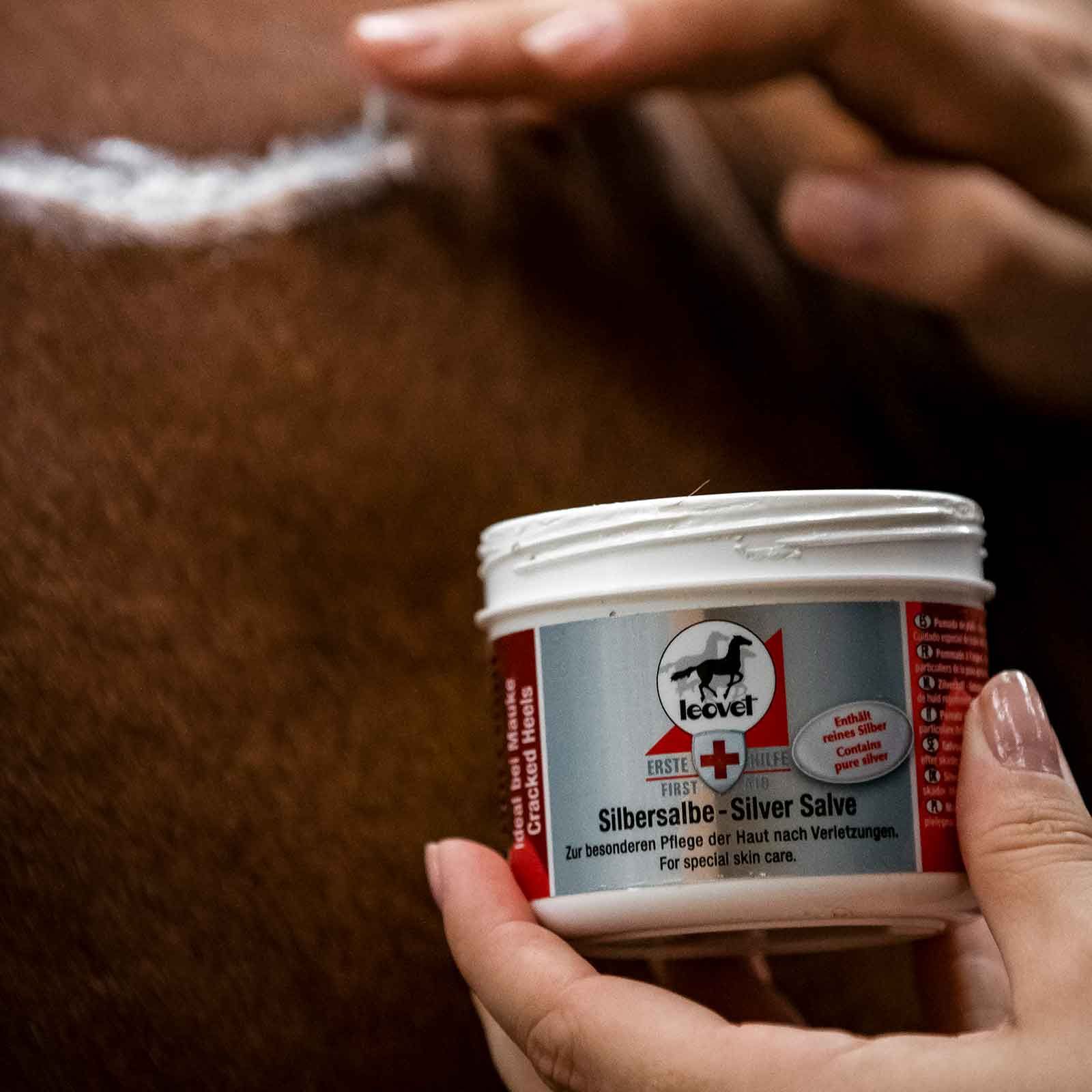 Leovet Silver unguent conține argint pur, care eliberează în mod constant ioni de argint și, prin urmare, efectul lor antiseptic. Bacteriile sunt alungate, inflamația scade, iar pielea se poate regenera și se poate calma. Uleiurile vegetale de înaltă calitate hidratează pielea crăpată și o fac suplă. De asemenea, poate fi utilizat preventiv pentru a proteja de umiditate și bacterii și pentru ameliorări. Unguentul Leovet Silver poate fi folosit împreună cu spray-ul cu oxid de zinc de la Leovet.