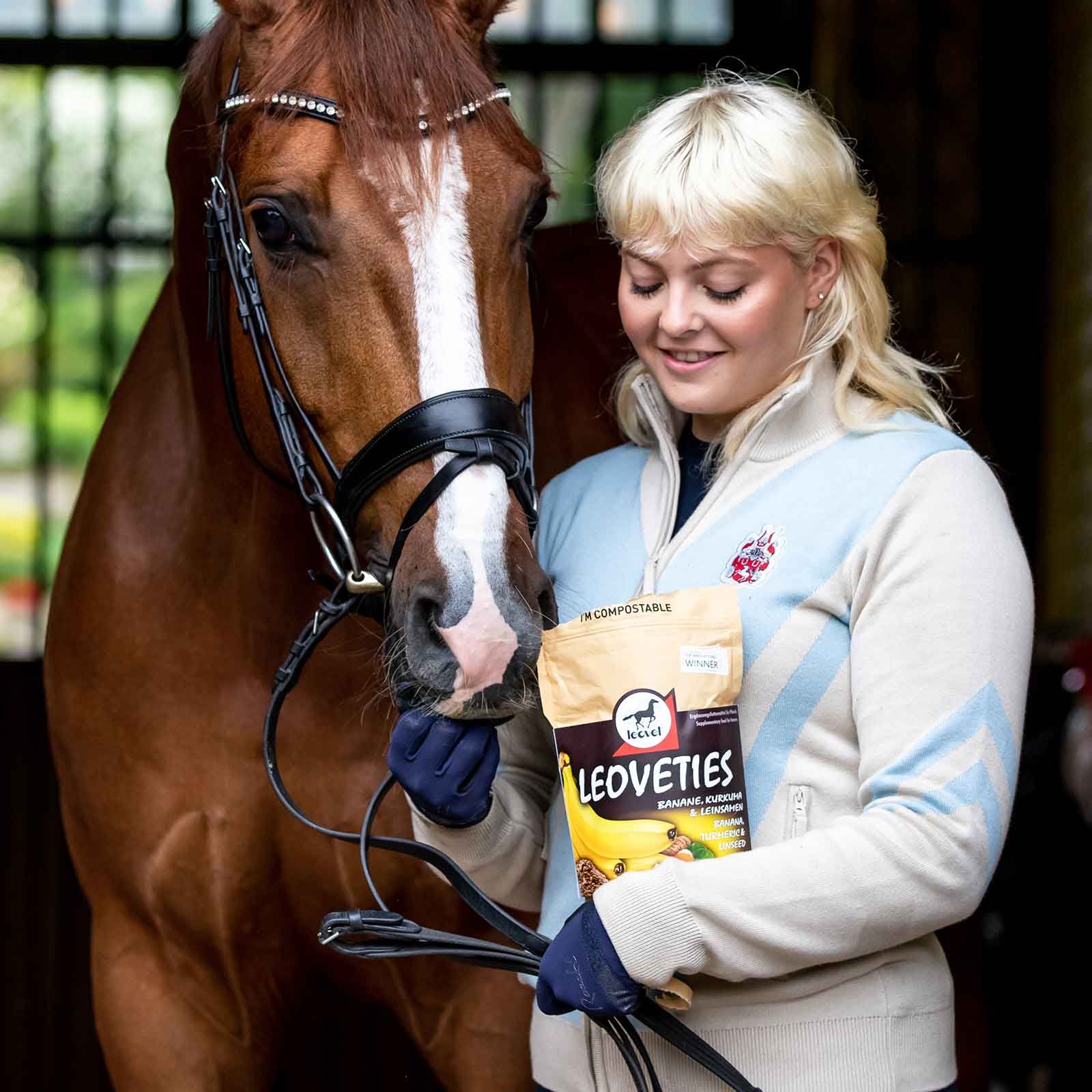Tratamentele Leoveties de la Leovet ca o recompensă sănătoasă pentru cai. Bananele furnizează carbohidrați sănătoși, fibre și minerale valoroase, cum ar fi magneziu, potasiu și vitamina B6. Turmericul este considerat planta sacră a Indiei pentru o bună stare de bine. Semințele de in sunt bogate în vitamine, minerale și acizi grași nesaturați. Ingredientele sunt ușor amestecate la temperaturi scăzute pentru a crea delicioasele bunătăți pentru cai Leoveties.