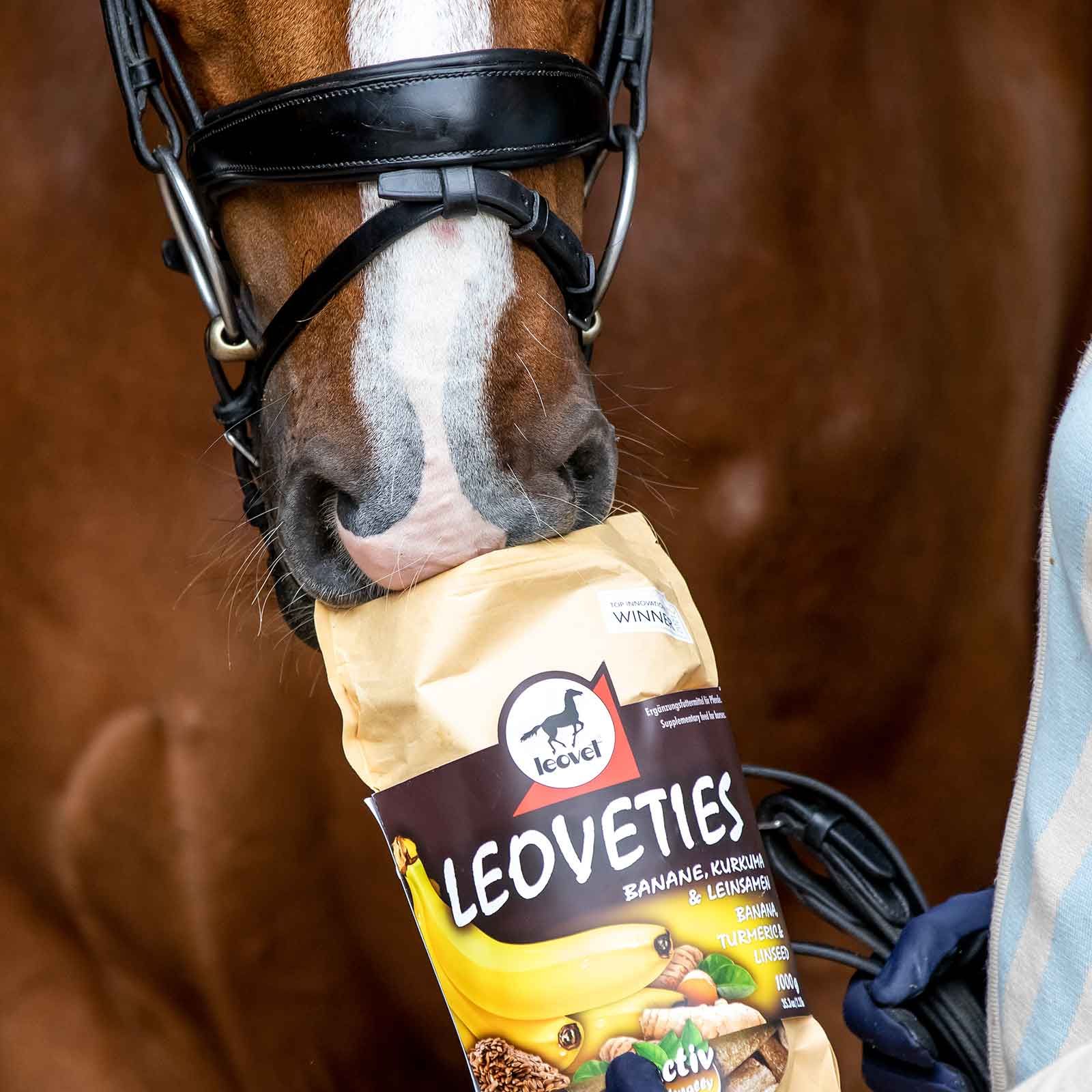 1x Leovet Leoveties recompense pentru cai cu banane, turmeric și semințe de in 1 kg.