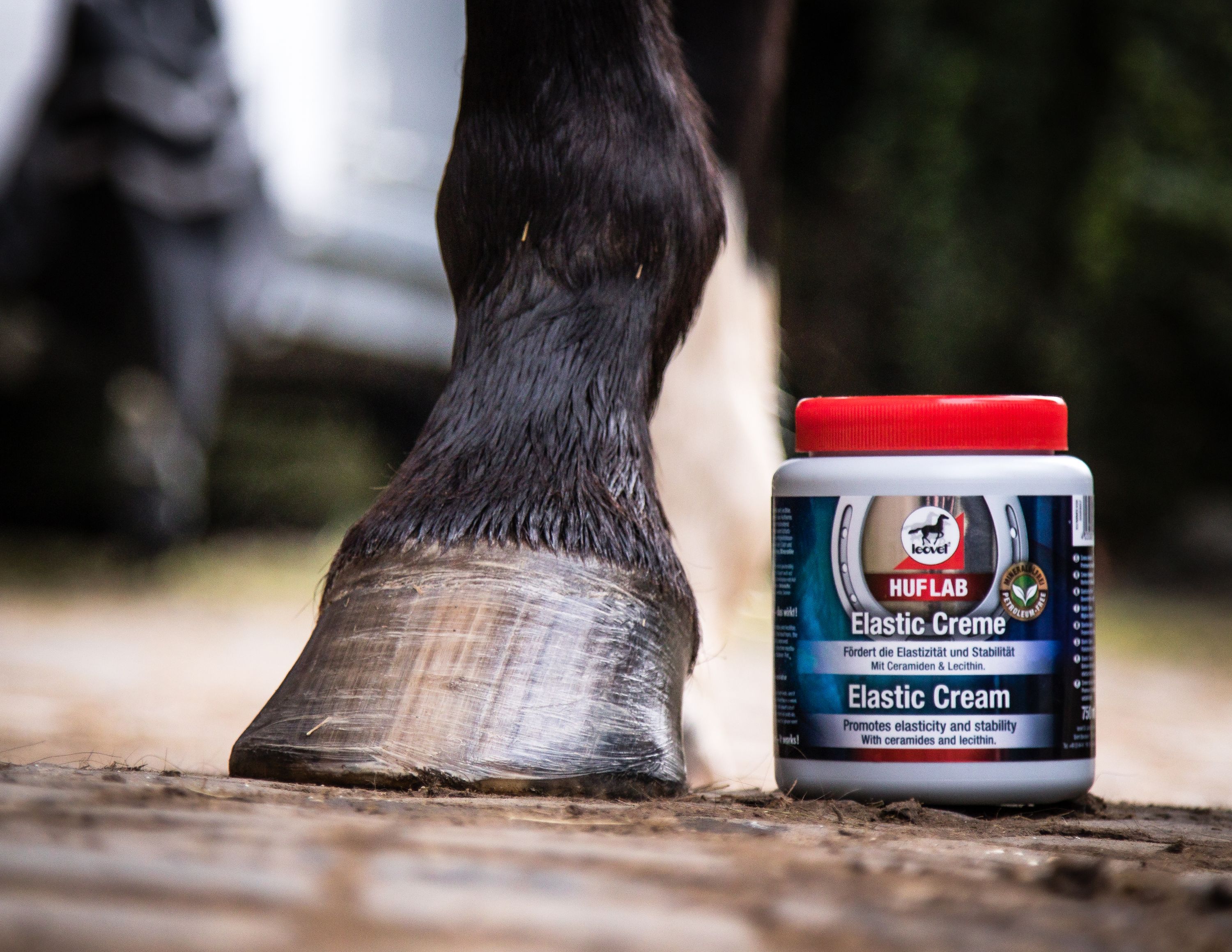 Prin aplicarea cremei Leovet HUFLAB Elastic Creme, elasticitatea și rezistența cornului copitei sunt îmbunătățite în mod decisiv. Uleiul de pulpă de cătină de mare conținut furnizează copitelor fragile vitamine și minerale și face ca stratul de cheratină să fie din nou elastic. Huflab Elastic Cream întărește copita și mecanismele sale de protecție. Vitamina E conținută în uleiul din semințe de struguri promovează echilibrul de hidratare. Ingredientele cătină de mare, ceramide și lecitină asigură copite elastice și puternice, cu un aspect neted și strălucitor. Crema pentru copite nu conține vaselină, uleiuri minerale sau parabeni!