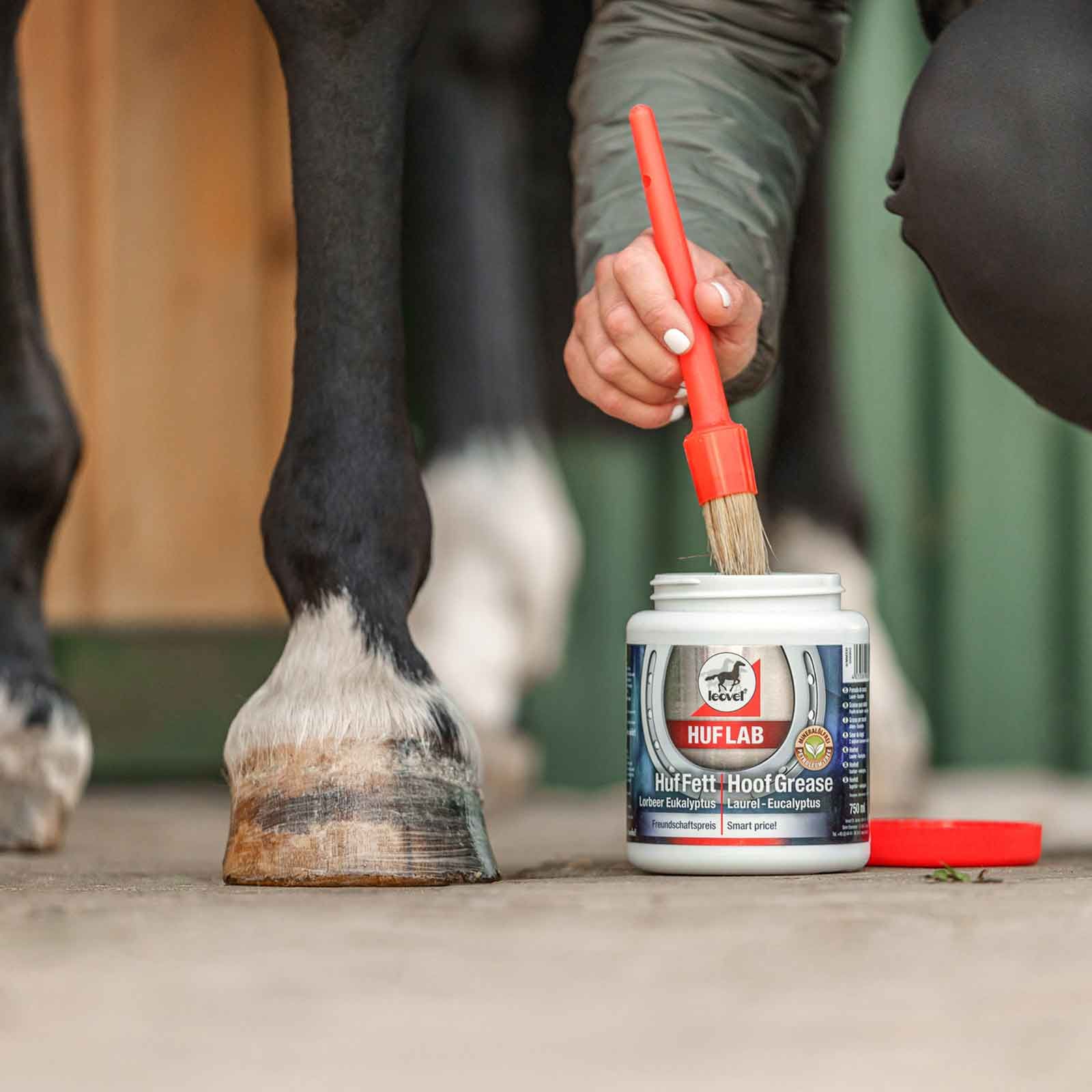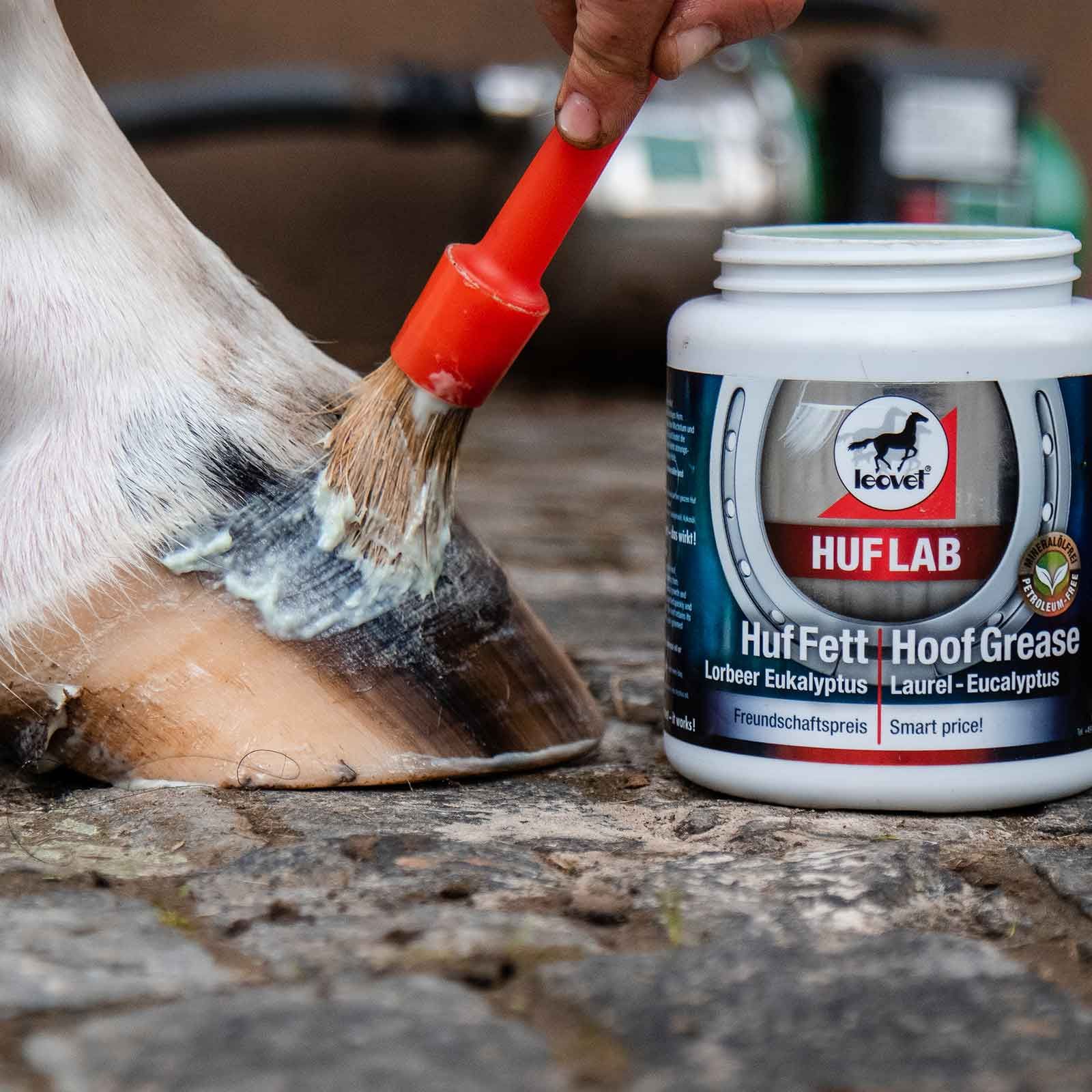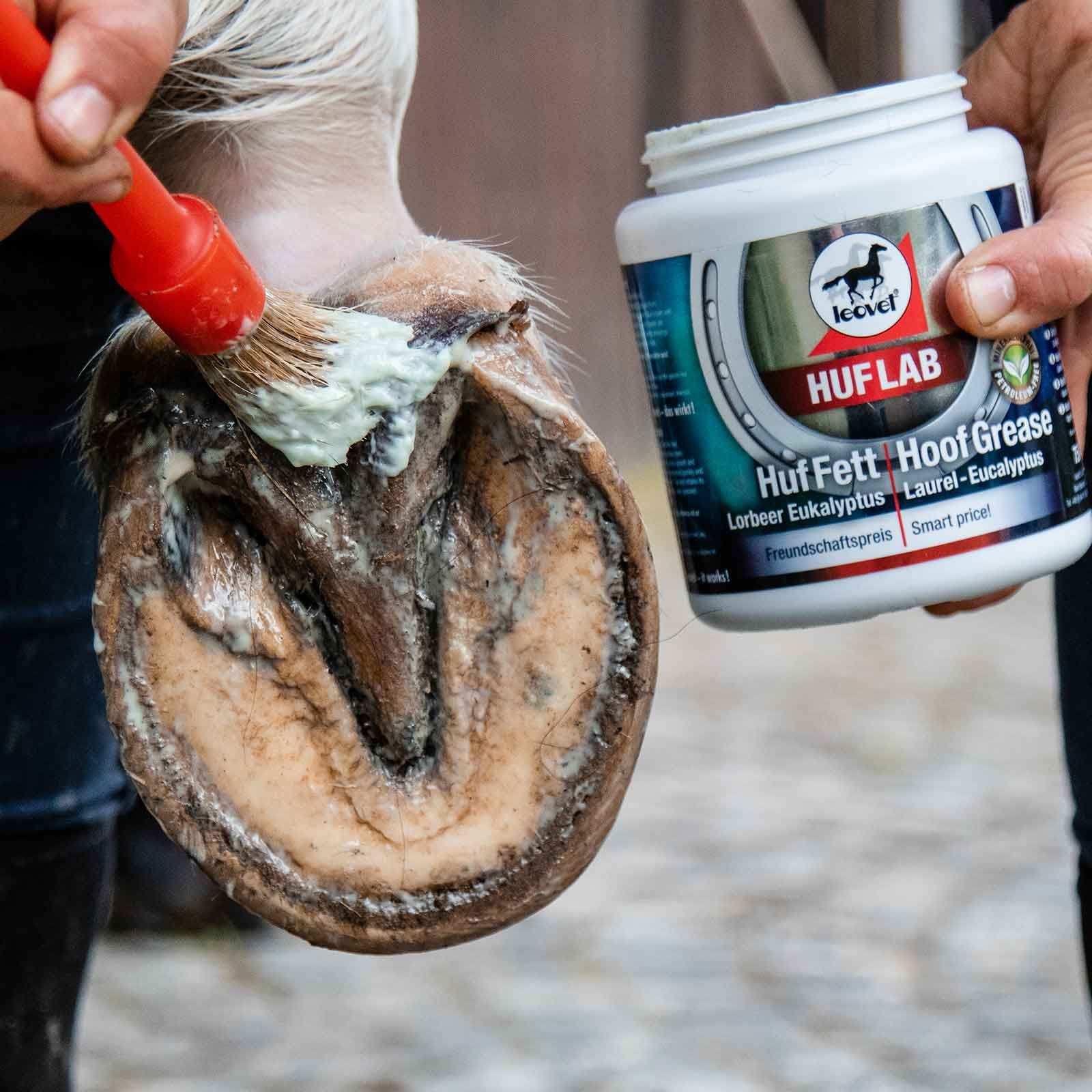 Grăsimea pentru copite de la Leovet regenerează coarnele fragile și casante. Uleiul de eucalipt conținut promovează creșterea naturală și elasticitatea. Se absoarbe rapid după aplicare și fixează umiditatea în copită. Dafinul vitalizează și favorizează circulația sângelui, stimulând astfel creșterea copitei și menținând copita respirabilă. Uleiul de cuișoare din grăsimea pentru copite Leovet are un efect preventiv împotriva aftelor. Per total, se obțin copite sănătoase și frumoase din punct de vedere vizual, bine îngrijite.