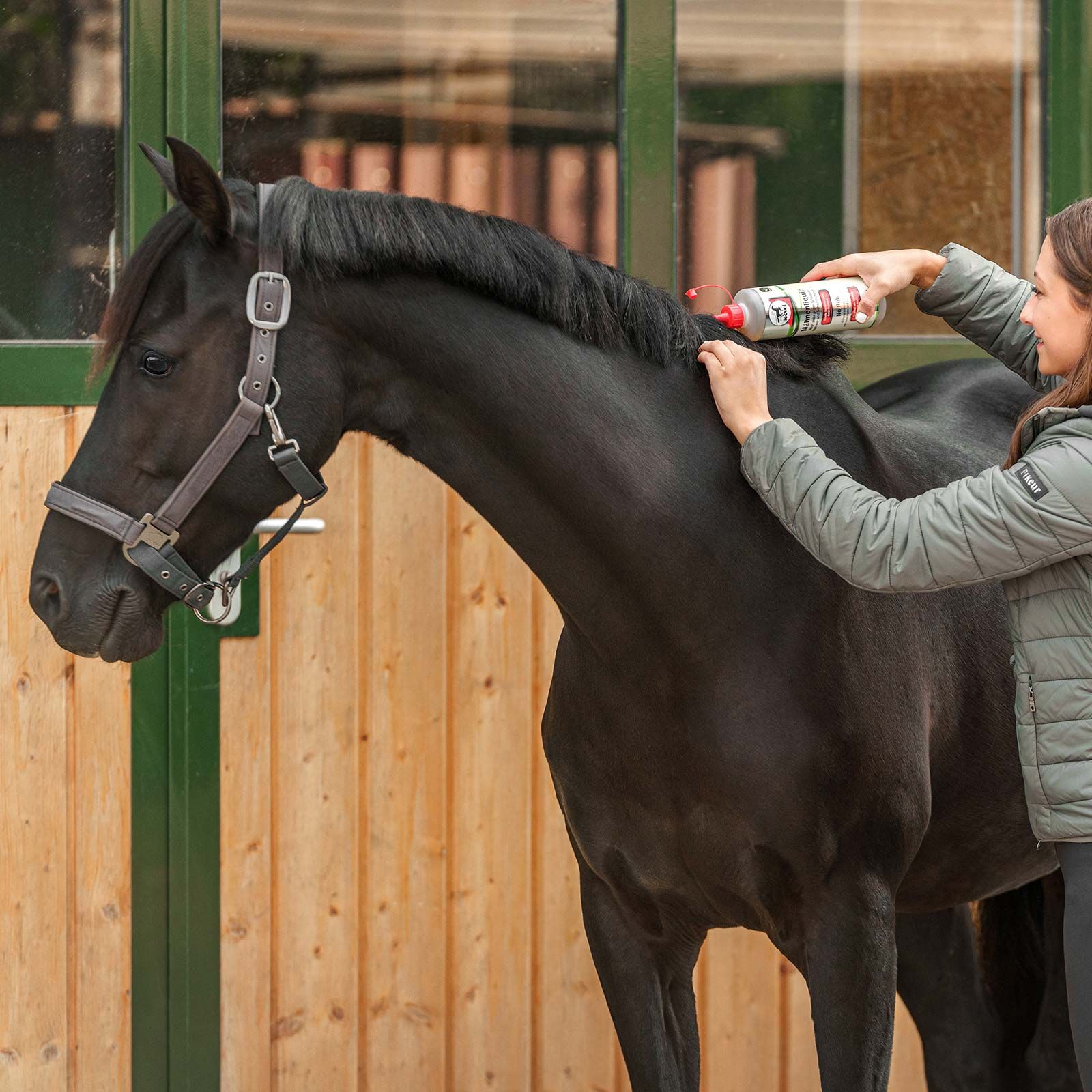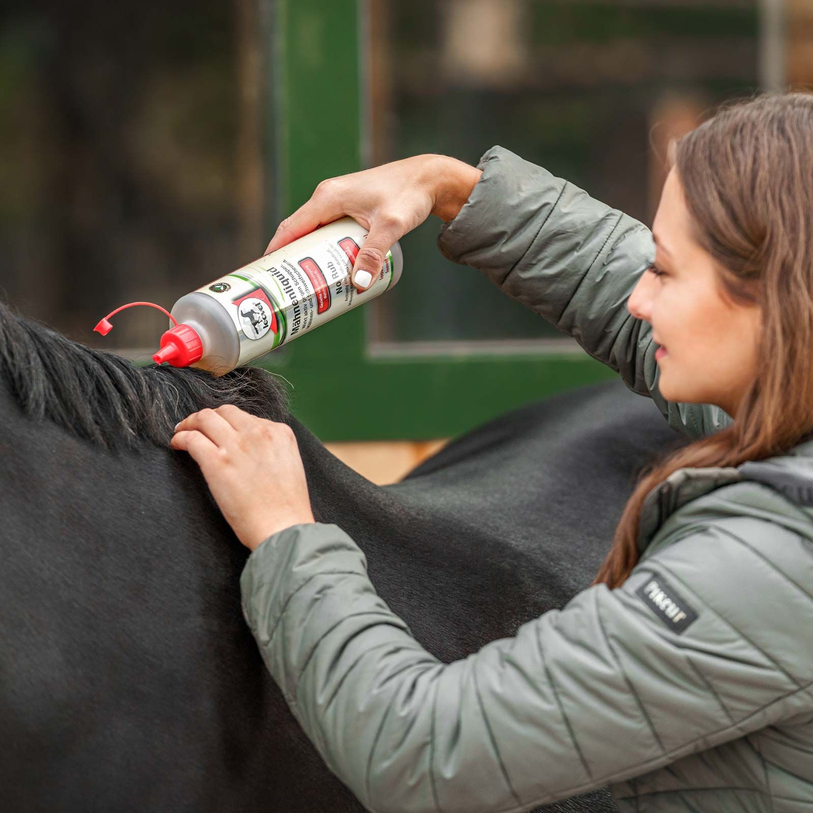 Leovet Mane Liquid face ca părul să nu aibă mătreață pe coamă și pe coadă și face să dispară mâncărimile. Astfel, se previne apariția cozii chele și a unei coame scurte și inestetice. Conținând lichid bio-sulfurat și uree, ajută la normalizarea tuturor proceselor biologice și calmează eficient pielea. Acest lucru face ca coama și coada să fie strălucitoare și sănătoase de la zero.