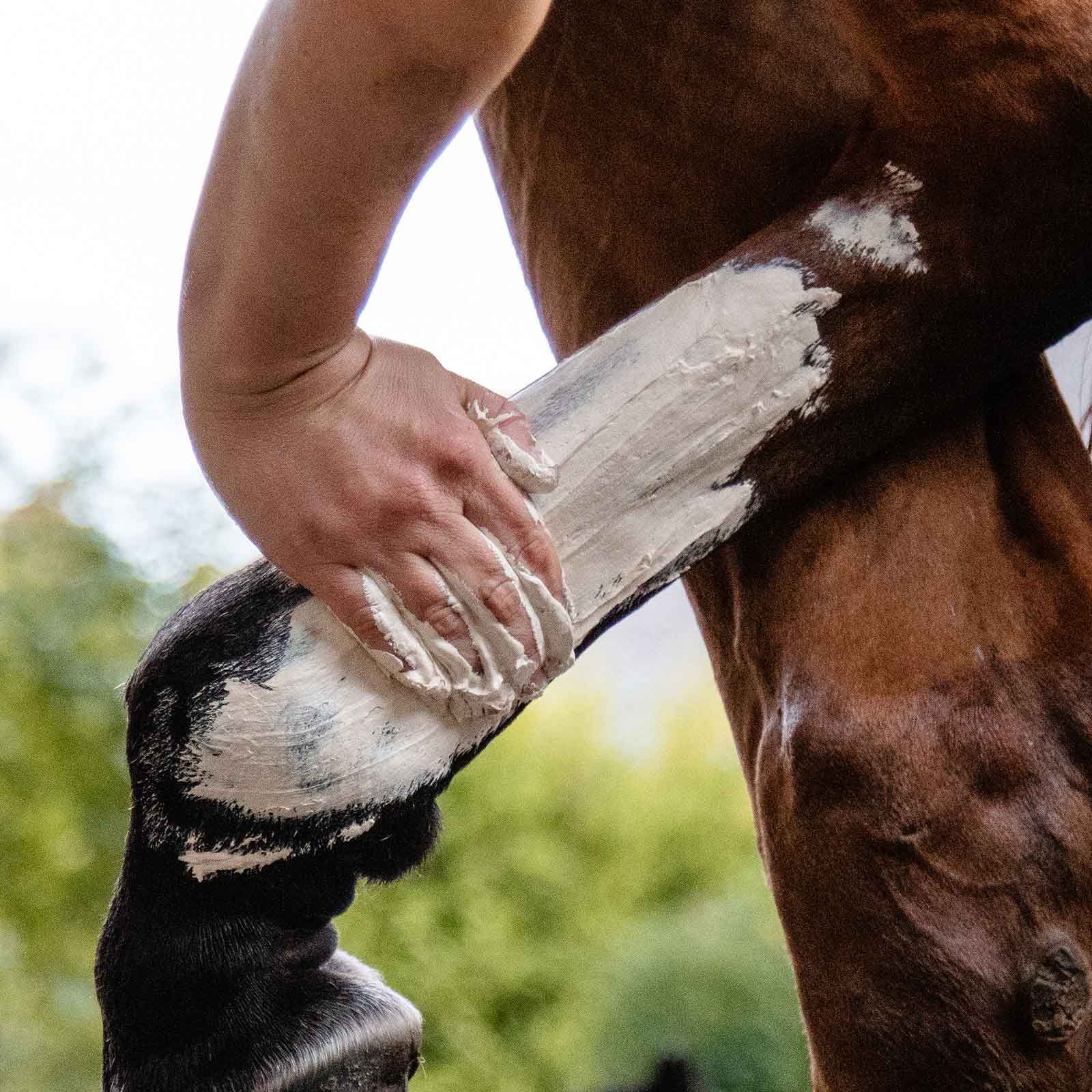Combinația de argilă și arnică regenerează, mobilizează și activează picioarele cailor.