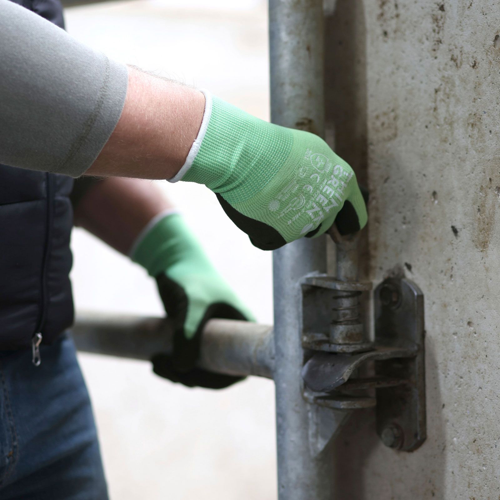 Mănușile THINKGREEN din tricot fin fără cusături, fabricate din 100 % poliester reciclat (13 gauge), sunt mănuși de lucru robuste pentru munca ușoară în agricultură, logistică sau în grădină. Datorită croielii sale excelente și ergonomice, mănușa respirabilă din tricot fin este ideală pentru utilizare permanentă. Suprafața sa poroasă din spumă de latex elastică garantează o senzație optimă la nivelul degetelor și o aderență excelentă pe uscat și pe umed.