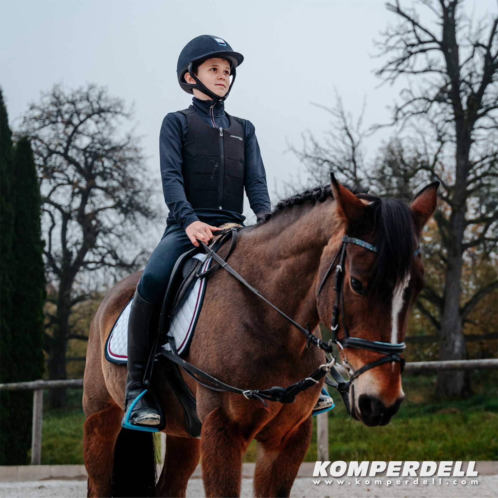 Acum și mai flexibilă și chiar mai ușoară! Această vestă de siguranță pentru echitație de la Komperdell combină cea mai sigură protecție pentru spate, certificată conform criteriilor stricte de protecție EN 1621-2 - Nivel 2, cu zone de protecție în zona frontală și a coastelor. Respirabilitatea și flexibilitatea maximă sunt posibile datorită construcției multistrat perforate continue în zonele de protecție. Acest lucru face ca această protecție pentru spate Komperdell să fie ideală pentru antrenamentul zilnic.