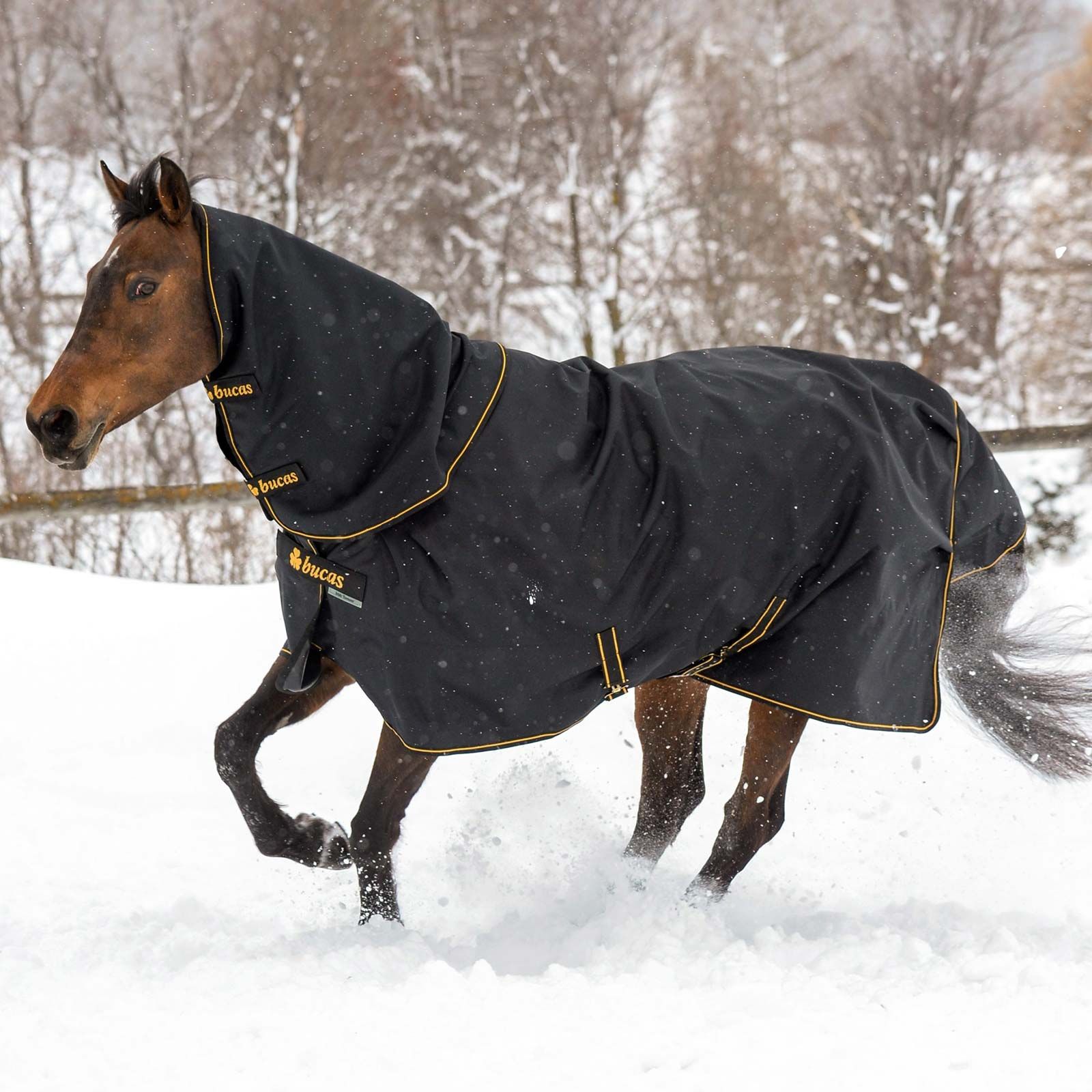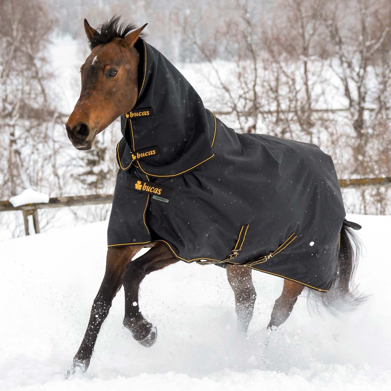 Cu piesa de gât Bucas Irish, calul este protejat suplimentar de intemperii. Bucas Irish Turnout este impermeabilă, respirabilă și are un material exterior durabil "Rip-stop". Căptușeala respirabilă "Silk-feel" oferă calului un nivel ridicat de confort.