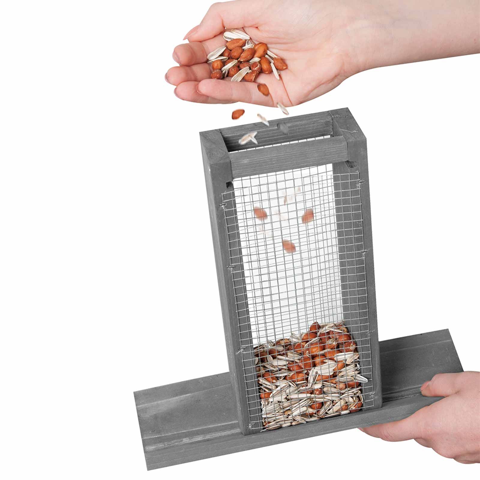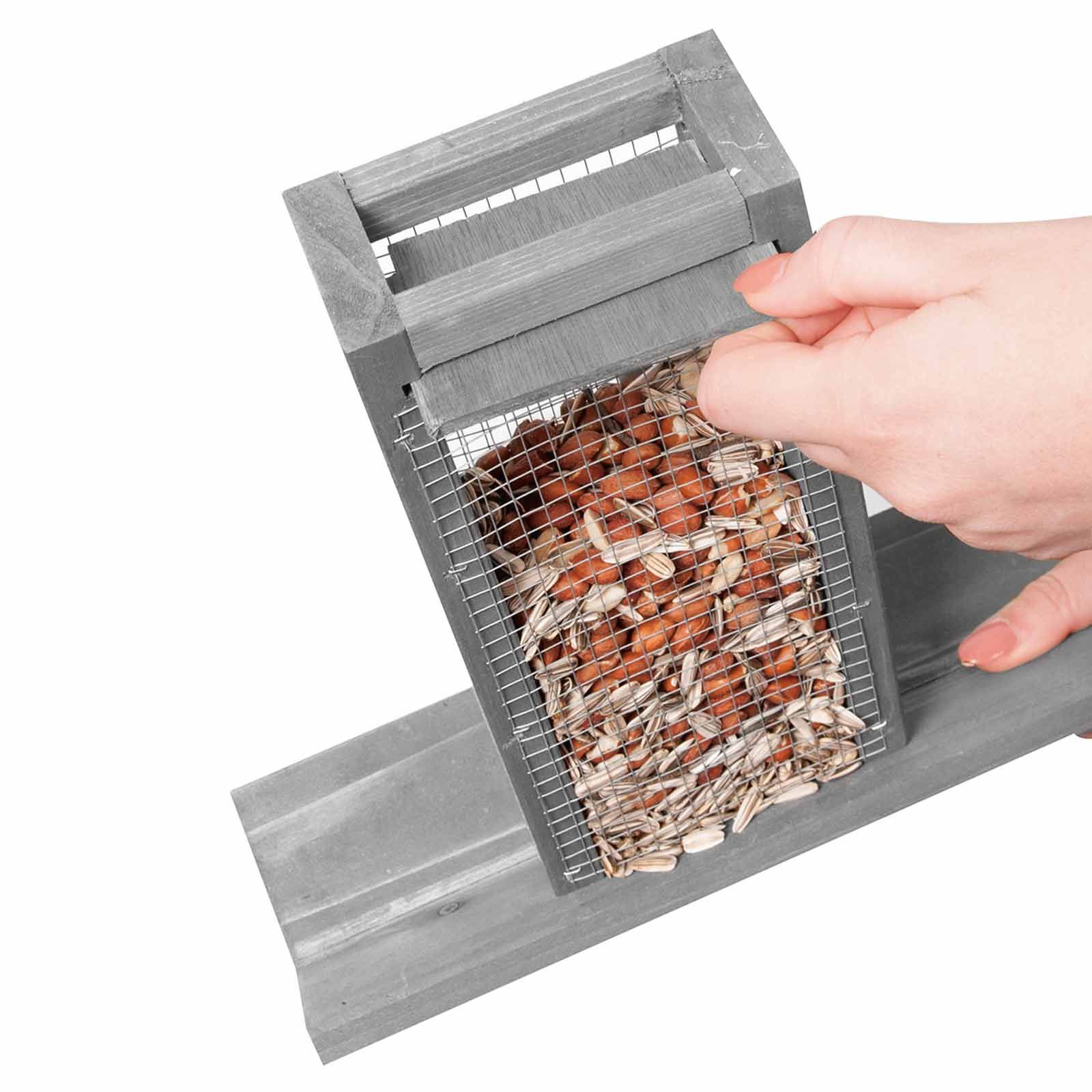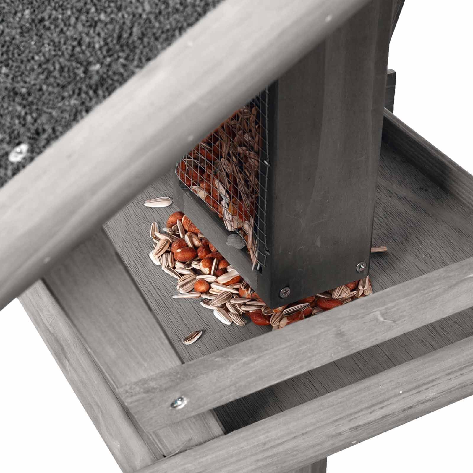 Căsuța pentru păsări este fabricată din lemn masiv rezistent la intemperii și, prin urmare, este ideală pentru hrănirea pe tot parcursul anului. Locul de hrănire este bine protejat de ploaie și zăpadă și este ușor de umplut. Acoperirea specială a acoperișului oferă un loc de aterizare ideal pentru animale, care este ușor accesibil din toate părțile! Căsuța pentru păsări este furnizată sub formă de kit și este foarte ușor de asamblat cu ajutorul instrucțiunilor de asamblare anexate.