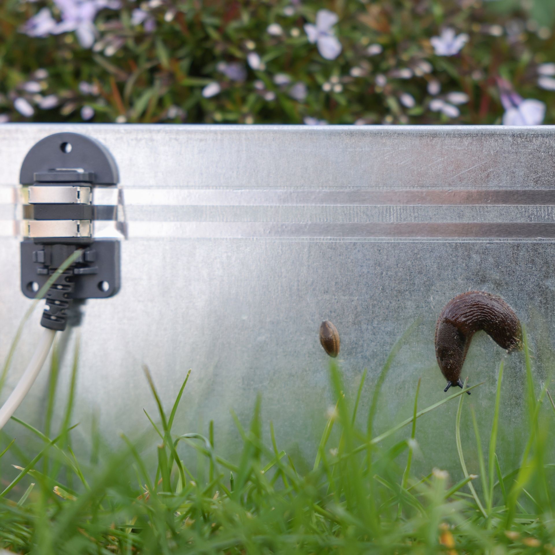 Controlați melcii în mod sigur și fiabil! Gardul electric pentru melci SnailStop vă protejează legumele de melci în siguranță și fără otravă. În comparație cu alte metode de control, gardul electric pentru melci nu se observă și este inofensiv pentru oameni și animale!