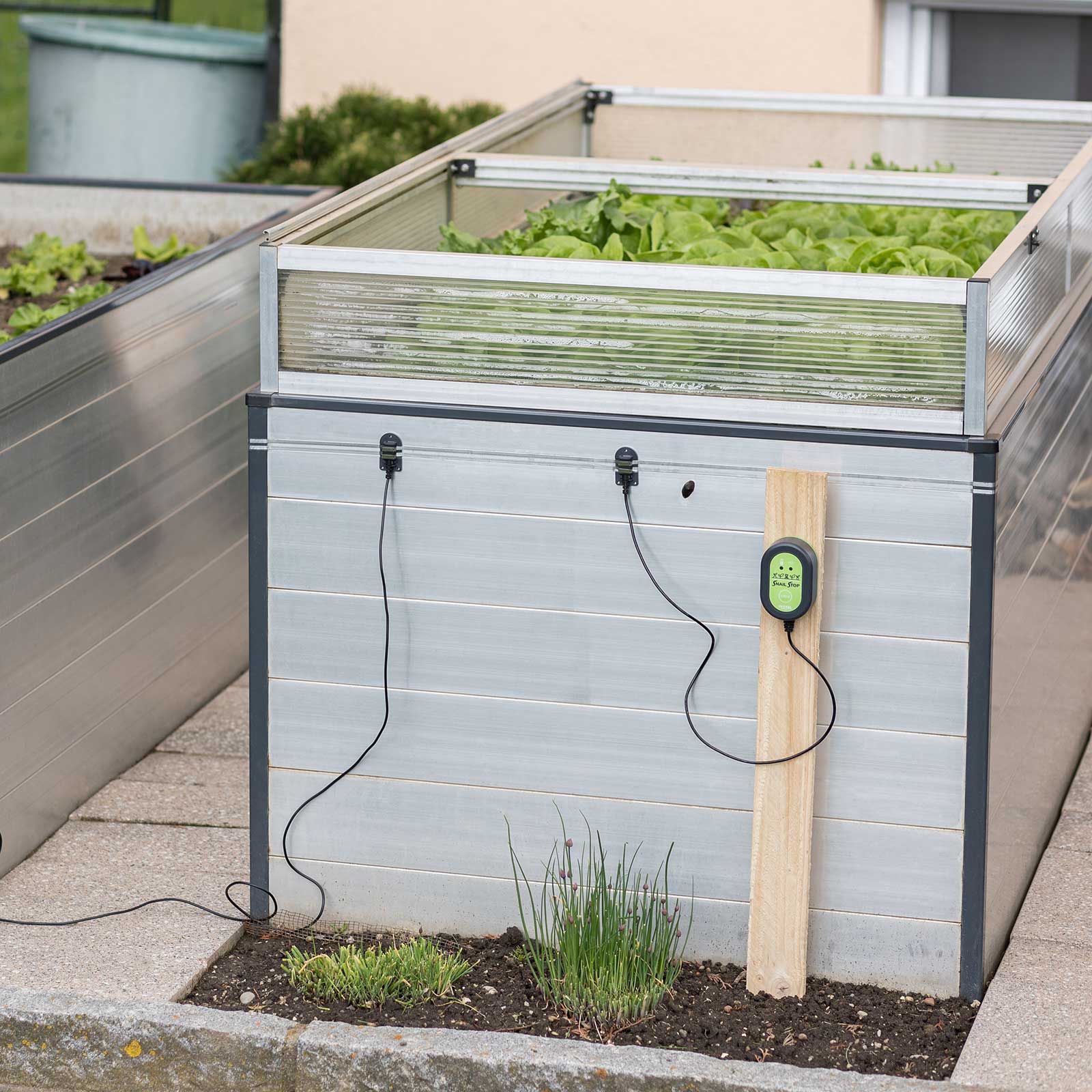 Prin intermediul conectorilor, care sunt disponibili ca accesorii, mai multe paturi ridicate de gradina pot fi operate cu o singură unitate de alimentare. În acest fel, gardul pentru melci poate fi extins până la o lungime totală maximă de 30 m.