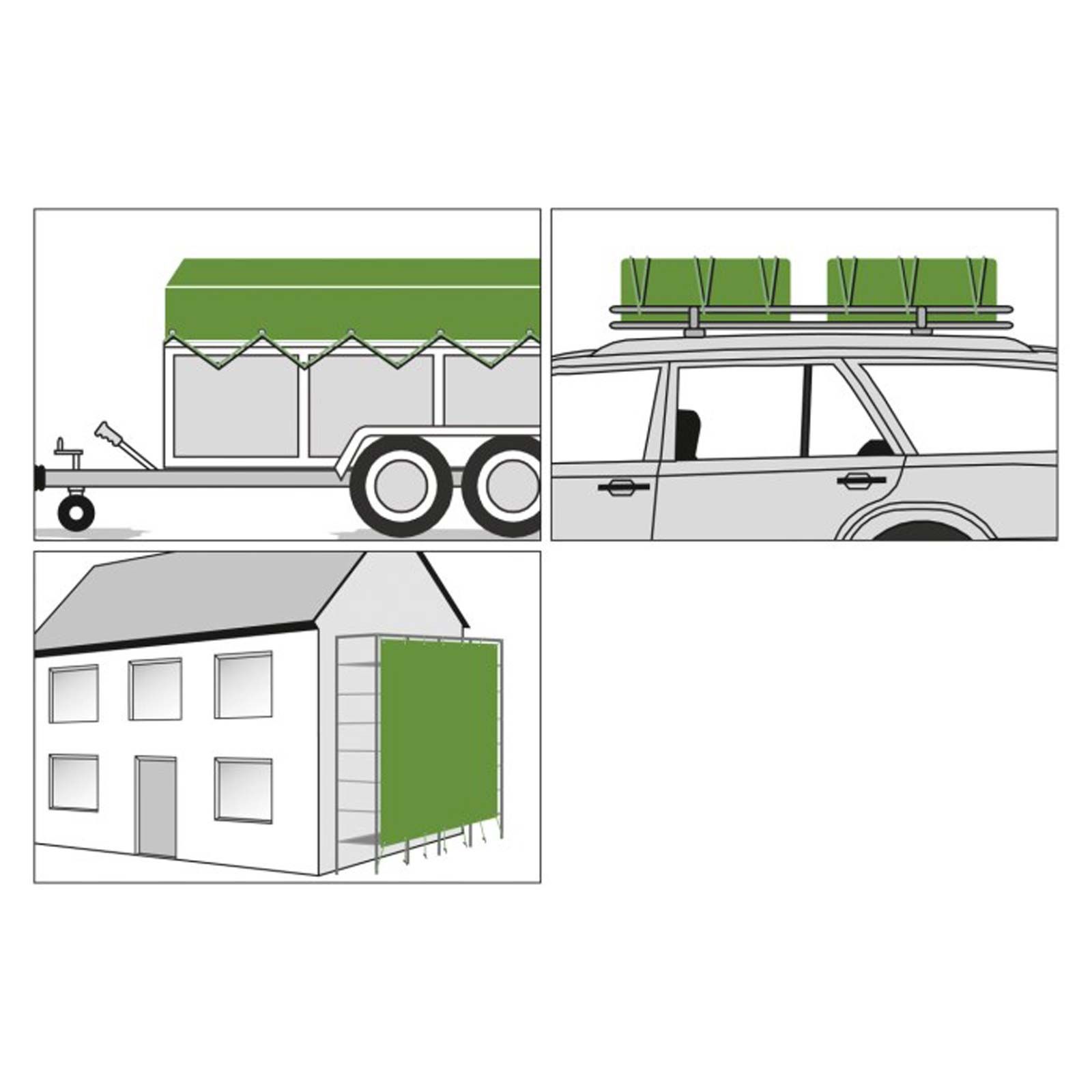 Prelata din material textil are ochiuri la intervale de 100 cm, ceea ce permite fixarea sigură și stabilă a prelatei. În plus, este întărită la margine. Această prelată este ușor de atașat și de îndepărtat și poate fi depozitată pentru a economisi spațiu atunci când nu este utilizată.