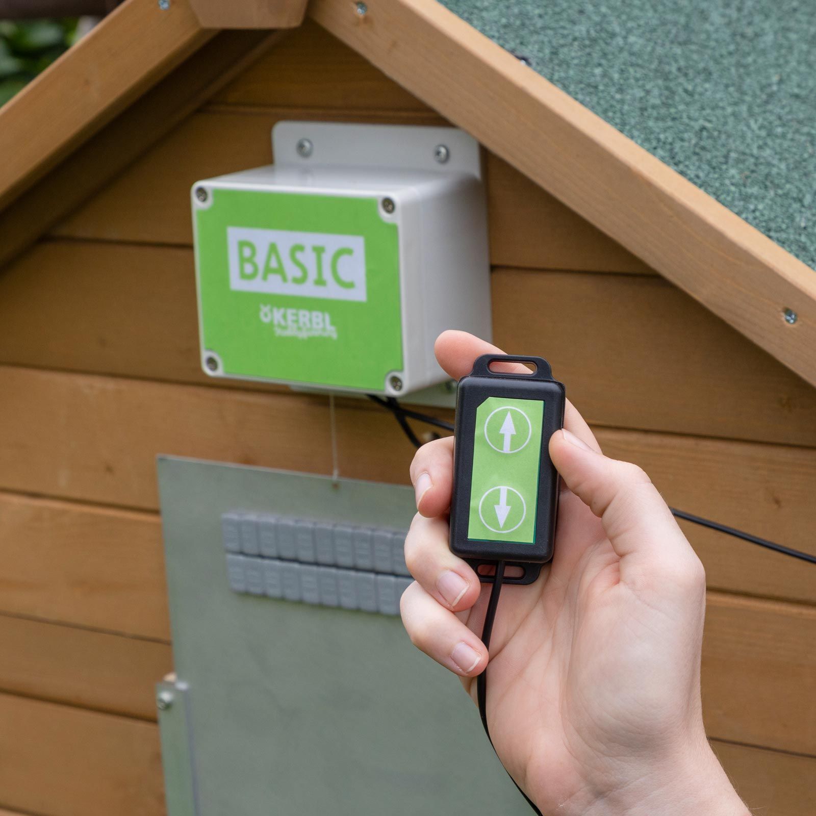 Pe lângă controlul automat, setul de bază pentru clapeta pentru pui include și un control manual prin intermediul unui comutator extern. Acesta este echipat cu un cablu de 5 m, astfel încât poate fi atașat oriunde în jurul cotețului de pui.
