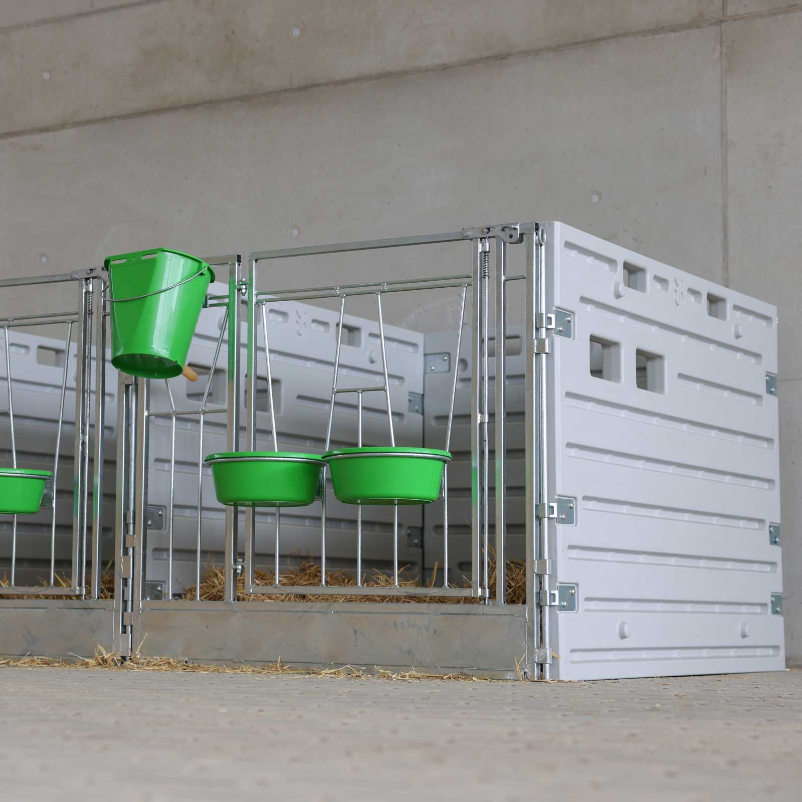 Boxele modulare pentru viței de la Kerbl oferă cea mai mare flexibilitate posibila și eficientă a muncii. Cu o dimensiune de 1,8 metri pătrați (1,60 x 1,15 m) per boxa pentru viței per boxa pentru viței, acestea oferă spațiu suficient pentru adăpostirea individuală a vițeilor.