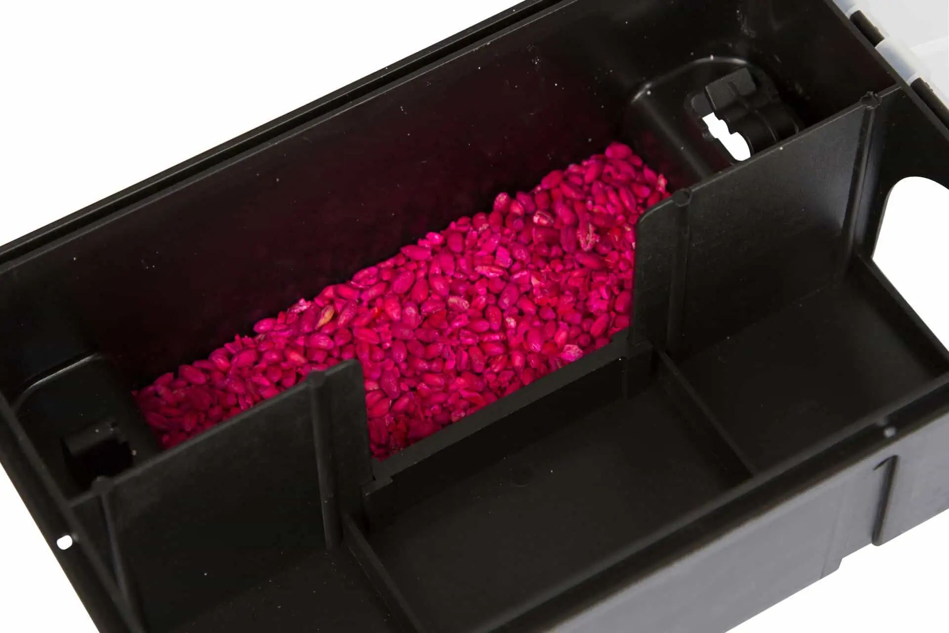 Jerry Bait Station oferă o metodă eficientă și sigură pentru combaterea șoarecilor. Este blocat pentru siguranța copiilor și a animalelor de companie și are un capac transparent pentru controale simple.