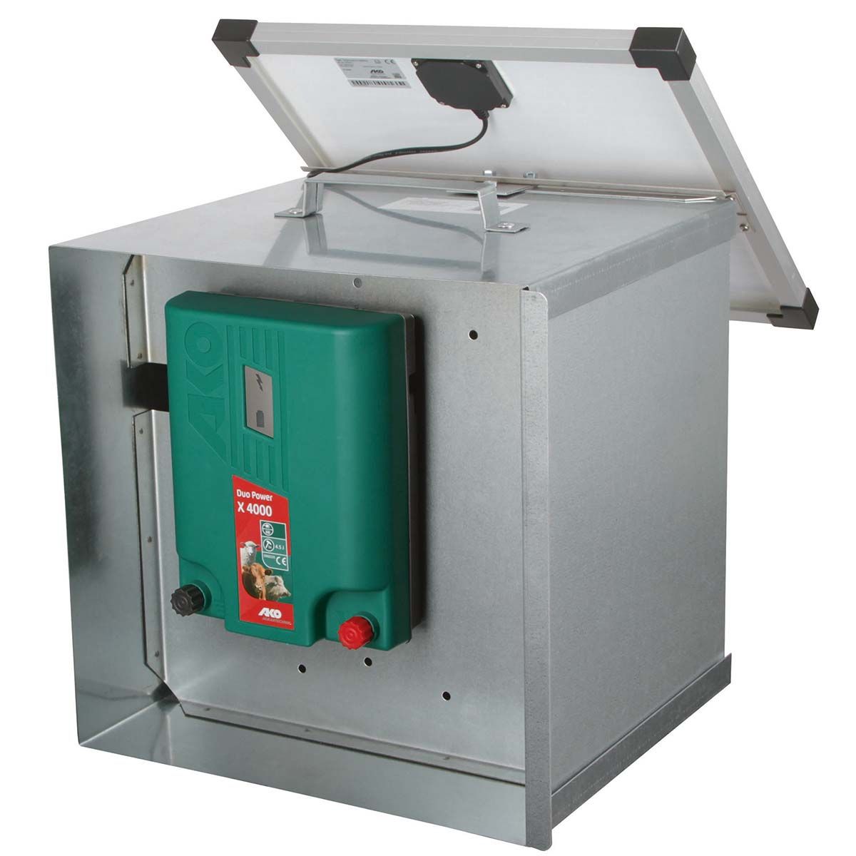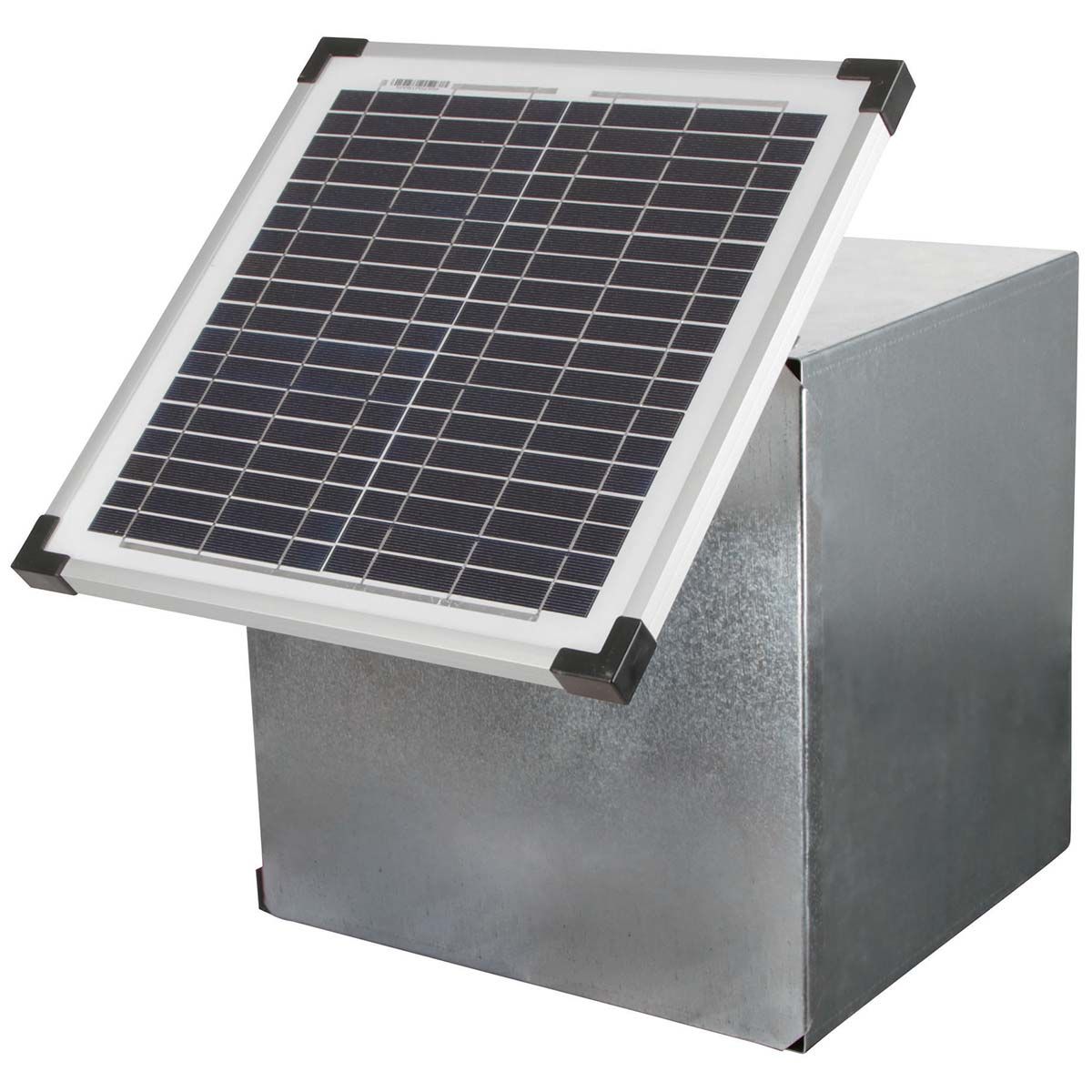 Inclusiv suport galvanizat pentru cutia metalică a bateriei și cleme pentru conectarea directă la bateria de 12 volți (cutia metalică a bateriei și unitatea nu sunt incluse).